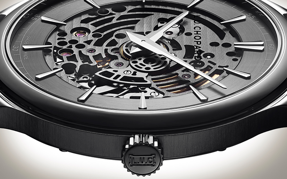 Κανένα είδος ρολογιού δεν τιμά περισσότερο τον μηχανισμό όσο τα skeleton, αφού τον αποκαλύπτουν σε όλο του το μεγαλείο. Το νέο L.U.C Skeletec είναι ένα πολύ λεπτό και κομψό ρολόι. Με πάχος μόλις 7,2 χιλιοστών είναι ένα από τα λεπτότερα αυτόματα skeleton μοντέλα στην αγορά. Με αφορμή την 25η επέτειο της Chopard Manufacture κυκλοφορεί σε νέα έκδοση από λευκό χρυσό 18Κ ηθικής προέλευσης, με νέο design, πιο ανοιχτό καντράν και είναι συλλεκτική έκδοση 50 μόλις τεμαχίων.