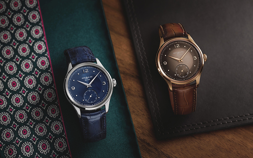 Και οι δύο εκδοχές του Montblanc Heritage Pythagore Small Second Limited Edition 148 συνδυάζονται με φίνα λουράκια από sfumato δέρμα αλιγάτορα σε μπλε ή καφέ.