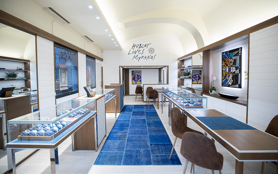 Πλήρως εναρμονισμένη με την αιγαιοπελαγίτικη αρχιτεκτονική του κοσμοπολίτικου νησιού, η νέα μπουτίκ της Hublot στη Μύκονο ακολουθεί πιστά το μεσογειακό concept «Hublot Loves Summer» συνδυάζοντας την πολυτέλεια ενός οίκου υψηλής ωρολογοποιίας με την ανεμελιά και την ταξιδιάρικη διάθεση του καλοκαιριού. Στεγάζεται στο κτήριο της οδού Ματογιάννη 43, εκεί όπου επί 45 χρόνια το κοσμηματοπωλείο Gofas φιλοξενούσε τα σημαντικότερα ονόματα της υψηλής ελβετικής ωρολογοποιίας (το νέο κατάστημα Gofas Jewelry έχει μεταφερθεί σε άλλο χώρο, στην οδό Καλογερά 25).