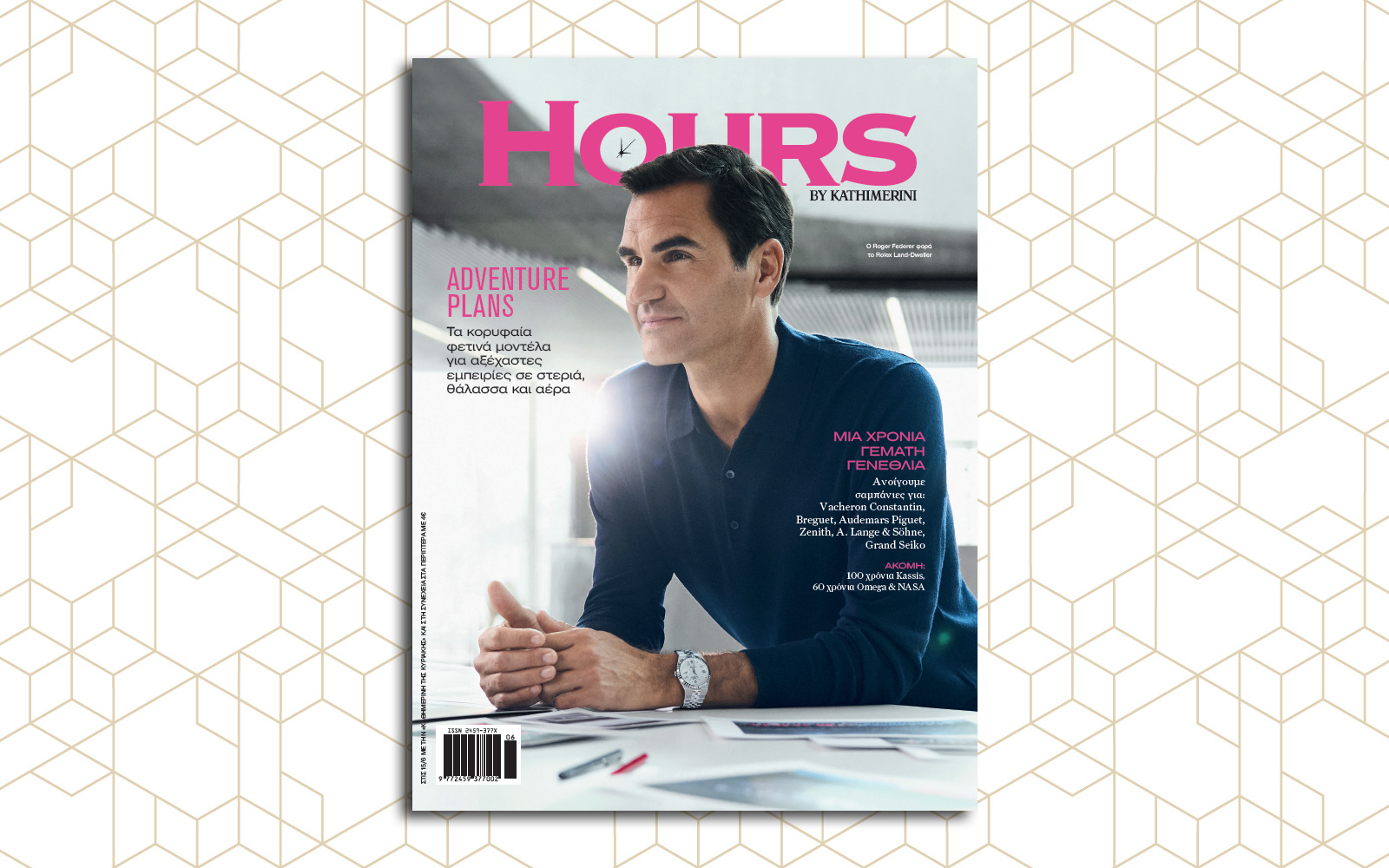 Στο εξώφυλλο του 21ου τεύχος του περιοδικού Hours, ο Ρότζερ Φέντερερ κρατάει σημειώσεις και κάνει σχέδια. Στον καρπό του φορά το ολοκαίνουργιο Land-Dweller της Rolex. Όπως προδίδει το όνομά του, είναι σχεδιασμένο για περιπέτεια στη γη -θα λέγαμε καλύτερα “για αστική περιπέτεια”. Αλλά στα Adventure Plans του Hours, δεν υπάρχει περιορισμός: Ξεκινάμε από την πόλη, κάνουμε ένα road-trip, μπαίνουμε στο σκάφος, βουτάμε στα βαθιά, φεύγουμε για κάπου μακριά με το αεροπλάνο, σκαρφαλώνουμε σε μια βουνοκορφή. Σε ό,τι περιπέτεια κι αν σχεδιάσουμε, έχουμε ταιριάξει και τα κατάλληλα ρολόγια.