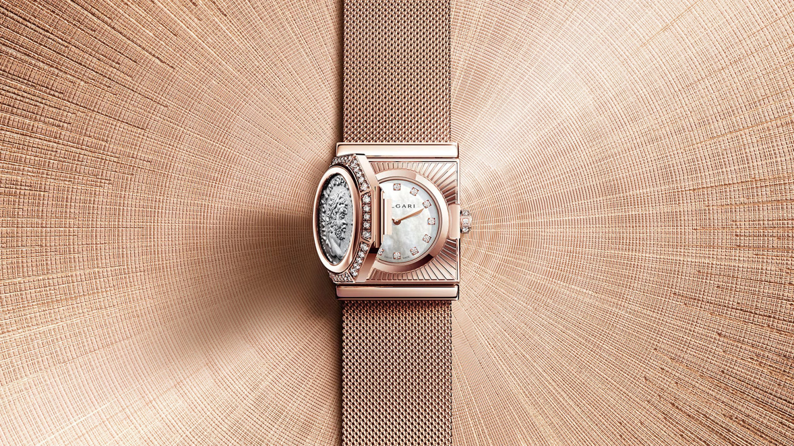 Το Monete επανέρχεται σε μια εξαιρετικά εκλεπτυσμένη εκδοχή. Στο κέντρο της κάσας από ροζ χρυσό βρίσκεται ένα αυθεντικό ρωμαϊκό νόμισμα (198–297 μ.Χ.), ενώ κάτω από το καπάκι αποκαλύπτεται ένα καντράν από λευκό mother-of-pearl με διαμαντένιες ενδείξεις. Το ρολόι κινείται από τον μικροσκοπικό μηχανισμό Piccolissimo BVP100, μια μινιμαλιστική αλλά πλήρως μηχανική κατασκευή με εξαιρετικά λεπτή διαμόρφωση, που συνοδεύεται από λεπτοδουλεμένο μπρασελέ τύπου Milanese.