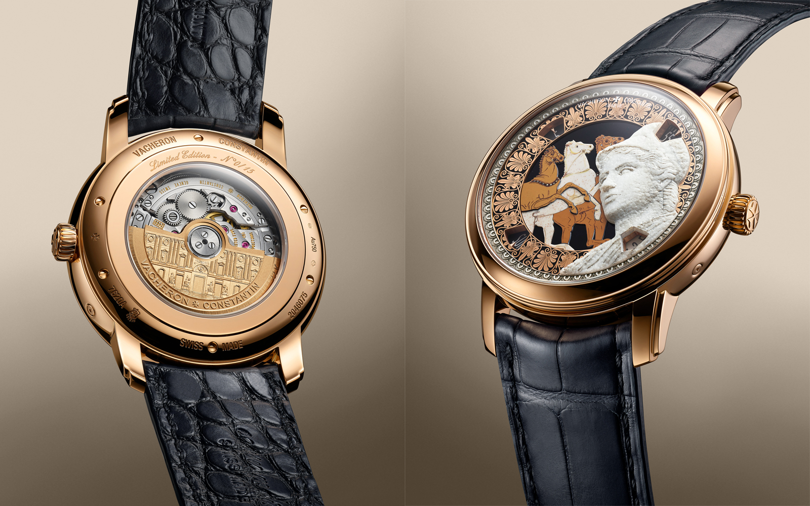 Ο Οίκος, που έχει μια μακρόχρονη συνεργασία με το Λούβρο, είχε παρουσιάσει το 2022 για πρώτη φορά τη συλλογή Métiers d’Art Tribute to Great Civilisations, με μια τετράδα κομματιών που έγραψαν ιστορία. Απέτιε φόρο τιμής στον Αιγυπτιακό, τον Περσικό, τον Ελληνικό και το Ρωμαϊκό πολιτισμό -με τη Νίκη της Σαμοθράκης να αναλαμβάνει τότε τον ρόλο της πρέσβειρας της Κλασσικής Αρχαιότητας. Φέτος, στο πλαίσιο της Watches & Wonders, η Vacheron Constantin επέστρεψε με μια νέα τετράδα, εστιάζοντας και πάλι στις ίδιες γεωγραφικές περιοχές, με τη διαφορά ότι για τη Μεσοποταμία πηγαίνει λίγο πιο πίσω στο χρόνο, αντλώντας έμπνευση από τον πολιτισμό της Ασσυρίας, ενώ η Κλασσική Ελληνική Αρχαιότητα εκπροσωπείται από ένα ρωμαϊκό αντίγραφο. Αυτό, όμως, που ενώνει και τα τέσσερα κομμάτια είναι ότι για πρώτη φορά οι μορφές έχουν δουλευτεί πάνω στην ίδια πέτρα με τα αρχαία έργα -ψαμμίτη για τον Αιγυπτιακό και Ασσυριακό πολιτισμό και μάρμαρο για τον Ελληνορωμαϊκό.