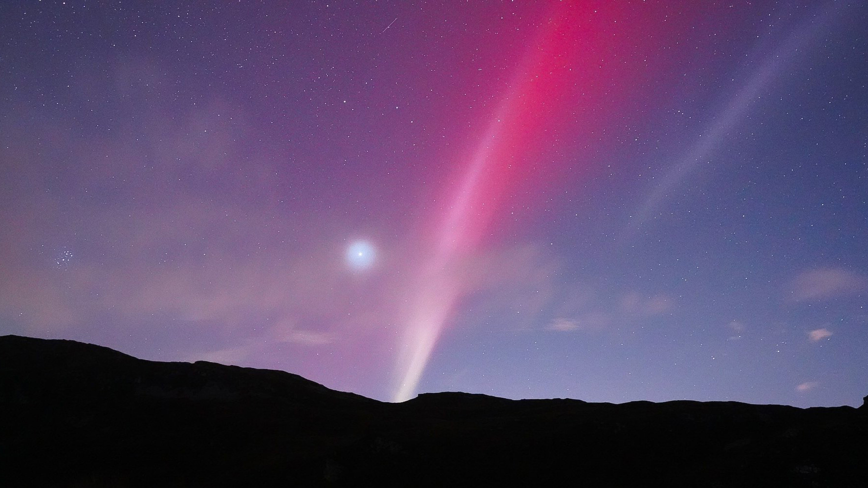 Κάπως έτσι συνέβη και με την αιθέρια κίνηση μοβ και πράσινων σχηματισμών πάνω από τον ορίζοντα στο βόρειο ημισφαίριο. Το φαινόμενο μοιάζει με σέλας, αλλά δεν είναι.