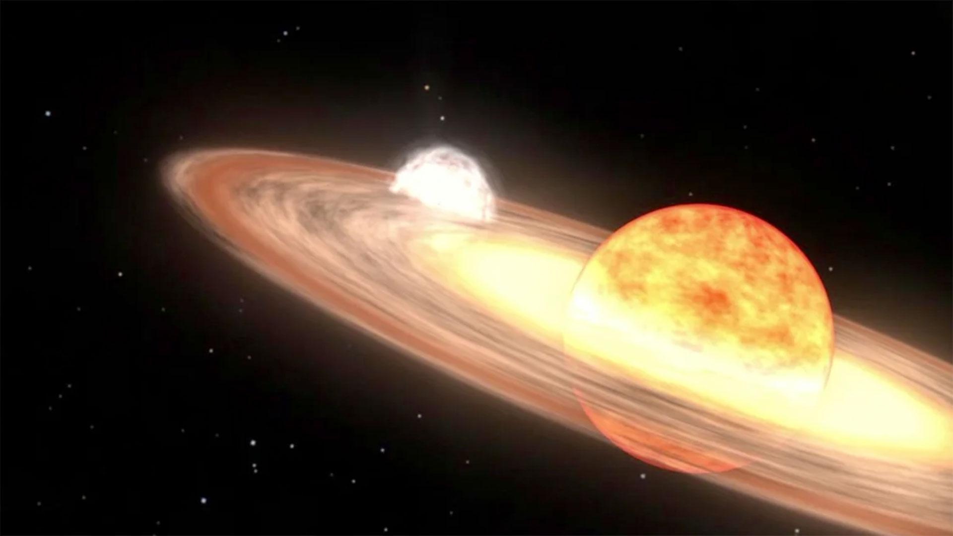Στο διπλό αστρικό σύστημα του T Coronae Borealis, γνωστό και ως «Blaze Star», ένας «νεκρός» λευκός νάνος βρίσκεται σε αιώνιο «χορό» με έναν γηρασμένο ερυθρό γίγαντα. Οι «ερυθροί γίγαντες» σχηματίζονται όταν τα αστέρια έχουν εξαντλήσει τα αποθέματα υδρογόνου για την πυρηνική σύντηξη και αρχίζουν και αυτά να πεθαίνουν.