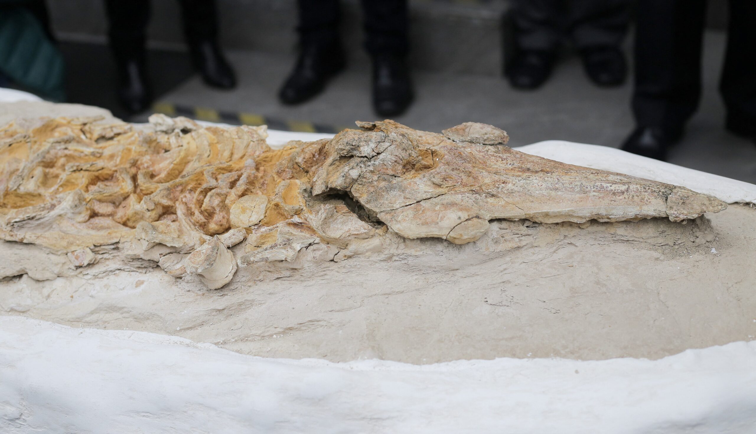 Exhiben en Perú fósil de especie singular delfín de hace 12 millones de años