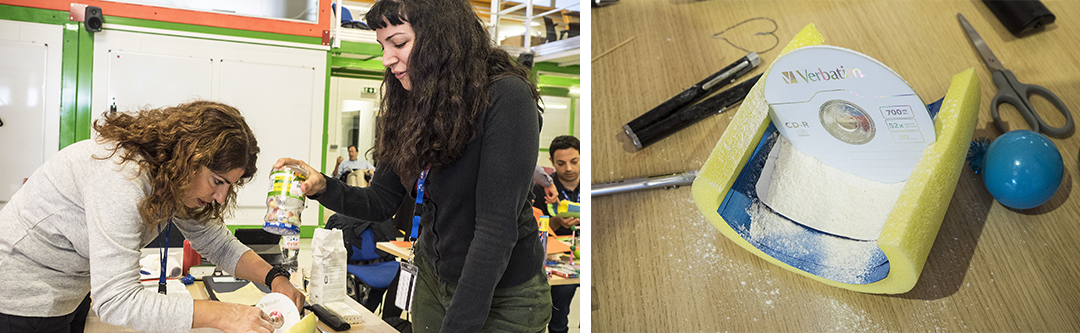 Το πείραμα του Ράδερφορντ γίνεται με πλαστελίνες, η δομή του ατόμου αποτυπώνεται με ζαχαρωτά και μακαρόνια, ενώ χαρτόνια, αλουμινόχαρτο και αλεύρι επιστρατεύονται για το ομοίωμα του Μεγάλου Επιταχυντή Αδρονίων LHC, που βρίσκεται 100 μέτρα κάτω από τα πόδια μας.