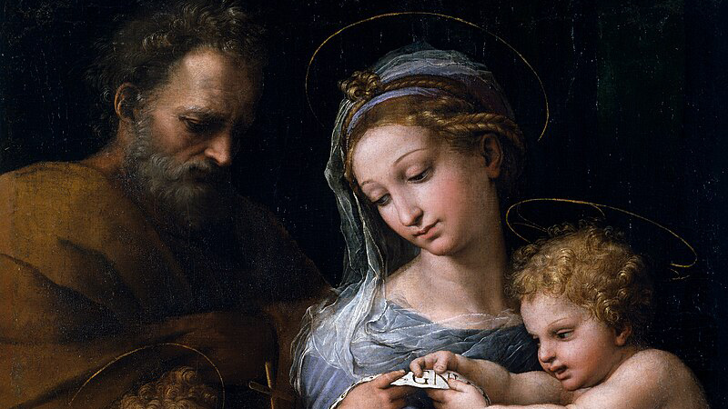 Ο πίνακας αναπαριστά τη Μαρία, τον Ιωσήφ και τον Ιησού μωρό, μαζί με τον μικρό Ιωάννη τον Βαπτιστή. Το καθηλωτικό έργο θεωρείτο εξ ολοκλήρου έργο του Ραφαήλ, μέχρι που τον 19ο αιώνα η βεβαιότητα αυτή αμφισβητήθηκε.