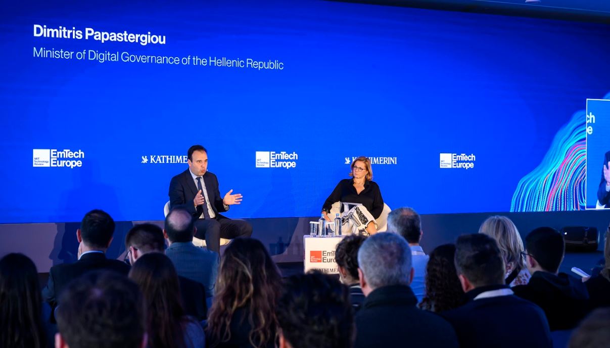 Για τον ρόλο της Ελλάδας στη νέα εποχή της Τεχνητής Νοημοσύνης και τις προοπτικές που ανοίγονται για την ψηφιακή διακυβέρνηση μίλησε ο Υπουργός Ψηφιακής Διακυβέρνησης, Δημήτρης Παπαστεργίου, στο EmTech Europe 2025. Τη συζήτηση συντόνισε η δημοσιογράφος της Καθημερινής, Μαργαρίτα Πουρνάρα.