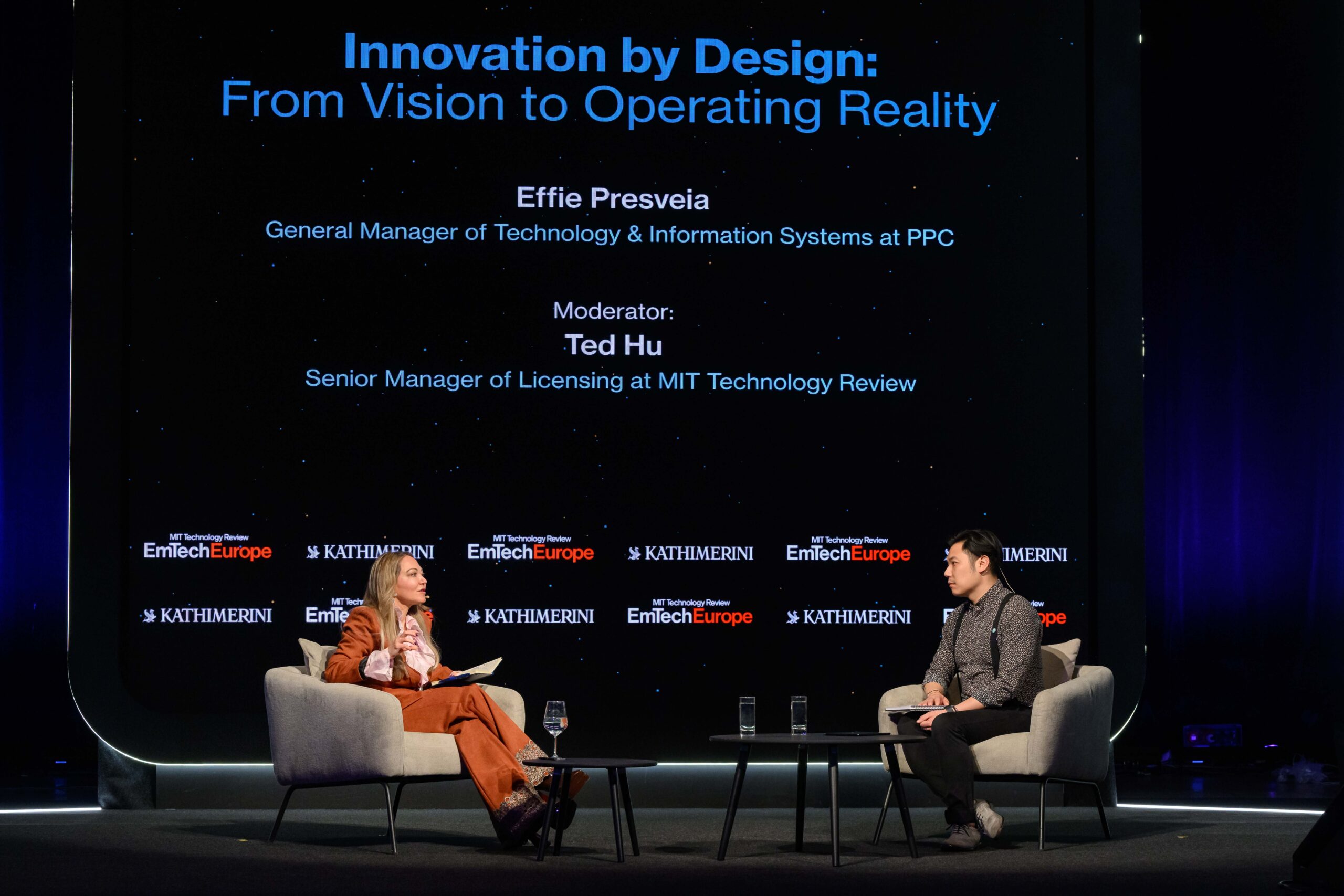 Τον καθοριστικό ρόλο του στρατηγικού σχεδιασμού της καινοτομίας στη μετάβαση από το όραμα στην επιχειρησιακή πραγματικότητα ανέδειξε η συζήτηση με τίτλο «Innovation by Design: From Vision to Operating Reality», στο πλαίσιο του συνεδρίου EmTech Europe 2026, που διοργανώνει το MIT Technology Review σε συνεργασία με την Καθημερινή. Στη συζήτηση συμμετείχαν η Έφη Πρεσβεία, General Manager of Technology & Information Systems στη ΔΕΗ, και ο Ted Hu, Senior Manager of Licensing στο MIT Technology Review.