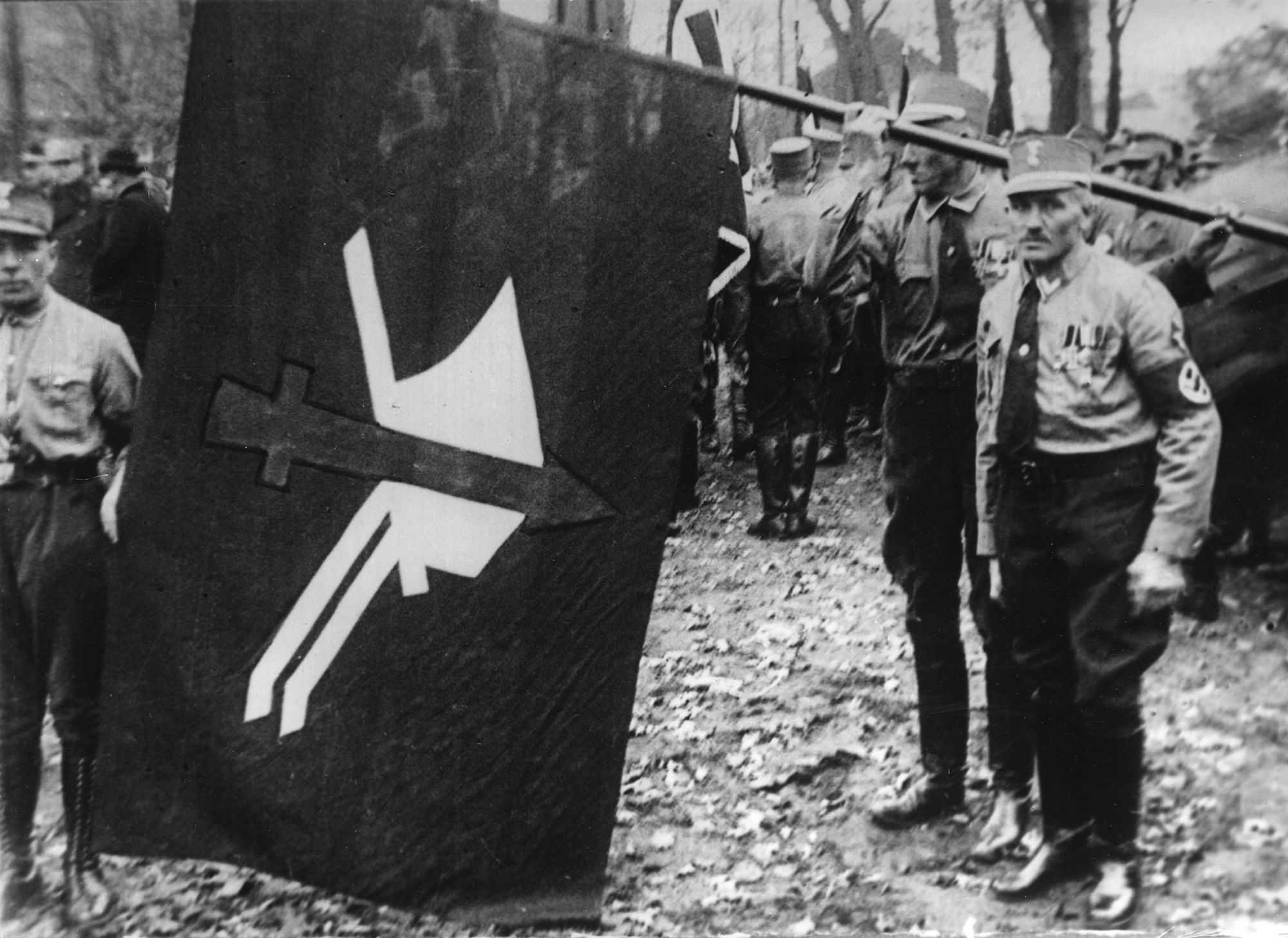 «ΕΙΣ ΤΑ ΟΠΛΑ!»: Από αρκετών ήδη ημερών, ειδικαί αμαξοστοιχίαι και άπειρα τροχοφόρα μετέφεραν εις το Κελχάιμ άνδρας των ταγμάτων εφόδου. Οχι μόνον εις το Κελχάιμ αλλά και εις το Ρέγκενσμπουργκ. […] Οι εθνικοσοσιαλισταί παρήλασαν διά του Ρέγκενσμπουργκ κατά την νύκτα υπό τους ήχους ενός νέου εθνικοσοσιαλιστικού εμβατηρίου του οποίου η επωδός είνε: «Λαέ! Εις τα όπλα!». Και εις την δημαρχίαν του Ρέγκενσμπουργκ, η οποία χρονολογείται από του 15ου αιώνος, οι αρχηγοί των εθνικοσοσιαλιστών, κατά την νύκτα, συνήλθον εν άκρα μυστικότητι. Το θέαμα ήτο φαντασμαγορικόν. Η αίθουσα εφωτίζετο από εκατοντάδας κασσιτερίνων κηροπηγίων αι φλόγες των κηρίων των οποίων ετρεμόσβυναν μέσα εις το νυχτερινόν σκότος […].