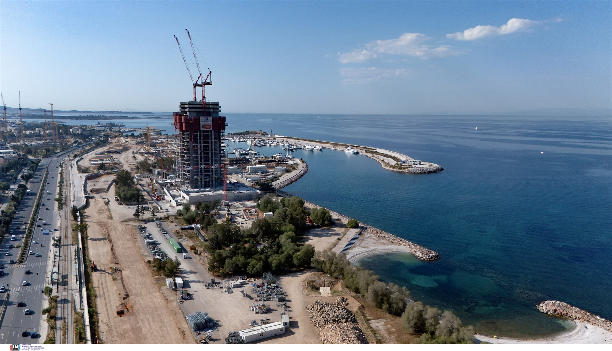 Πέρα όμως από τις επιμέρους επιλογές, ανακύπτουν ευρύτερα ερωτήματα για την κλίμακα και την εικόνα της πόλης που διαμορφώνεται. Στη σύγχρονη Αθήνα δεν υπάρχει κάποια ισχυρή αρχιτεκτονική παράδοση την οποία οφείλουμε να προστατέψουμε. Δεν τίθεται ζήτημα ταυτότητας, αλλά ούτε και λόγος να φοβόμαστε νεωτερισμούς όπως τα ψηλά κτίρια. Oμως όσο μεγαλώνει η κλίμακα ενός έργου, και μαζί με το ύψος και η επίδρασή του στο περιβάλλον, τόσο πιο αυστηρές πρέπει να είναι οι απαιτήσεις από τον σχεδιασμό του. Αν στη δημιουργία ενός συνηθισμένου κτιρίου λαμβάνουμε υπόψη τη σχέση με το άμεσο περιβάλλον, στον σχεδιασμό ενός τόσο μεγάλου κτιρίου αποκτά βαρύτητα η σχέση με το ευρύτερο τοπίο και τα σημεία αναφοράς του λεκανοπεδίου. Η όψη του πύργου που έχει ήδη φτάσει το μισό ύψος του, και γίνεται πλέον ορατός από τον Λυκαβηττό, δεν προδιαθέτει ευχάριστα. Η επιλογή της δημιουργίας ενός κτιρίου 200 μέτρων πάνω στην ακτή δημιουργεί ερωτήματα, τη στιγμή που ο Παρθενώνας εδράζεται μόλις στα 150 μέτρα πάνω από την επιφάνεια της θάλασσας. Η Αθήνα θα μπορούσε να ωφεληθεί από πύργους που προσθέτουν αξία στην εικόνα της, όχι όμως από πύργους που την ακυρώνουν. Η περιοχή του Ελληνικού σαφώς δικαιολογεί και πιθανώς επιβάλλει τη μεγάλη κλίμακα. Η εικόνα, όμως, ενός κτιρίου που υπερβαίνει κατά 50 μέτρα το ύψος της Ακρόπολης δεν αποτελεί απλά υπερβολή όσον αφορά την κλίμακα του τοπίου. Θέτει και ζητήματα συμβολισμού σε σχέση με την εποχή μας, τα οποία κάποια στιγμή θα αναλύσουν οι ιστορικοί του μέλλοντος.
