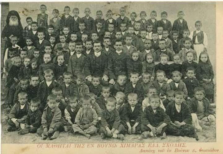 Η φωτογραφία είναι βγαλμένη το 1903. Σε αυτήν απεικονίζονται 87 αγόρια, 11 κορίτσια, τρεις δάσκαλοι κι ένας ιερέας να κοιτούν βλοσυρά τον φακό. Από κάτω αναγράφεται με κεφαλαία γράμματα: ΟΙ ΜΑΘΗΤΑΙ ΤΗΣ ΕΝ ΒΟΥΝΩ ΧΙΜΑΡΑΣ ΕΛΛ. ΣΧΟΛΗΣ. Το Βουνό είναι το χωριό της μητέρας του Αλβανού πρωθυπουργού Εντι Ράμα. Σε πρόσφατη συνέντευξή του στην εφημερίδα «Καθημερινή» (20/4/2026) ισχυρίστηκε ότι «στο Βουνό κανείς δεν μιλούσε ελληνικά». Η φωτογραφία είναι η απάντηση.