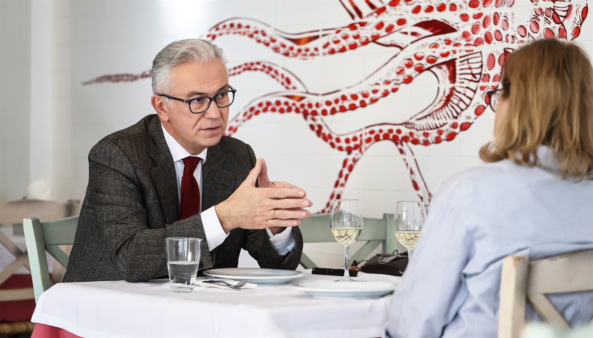 Βοήθησε η πρότερη θητεία στη δημοσιογραφία και στην πολιτική για να αναπτύξει διαπραγματευτικές ικανότητες; «Και βέβαια. Είχα γνωρίσει και συναναστραφεί μεγάλες προσωπικότητες στην Ελλάδα και στο εξωτερικό, ηγέτες που άφησαν το αποτύπωμά τους στην Ιστορία. Παρατηρώντας τους μαθαίνεις πολλά, αλλά και σίγουρα διαβάζοντας συνεχώς – ήμουν και παραμένω φανατικός αναγνώστης», είπε πίνοντας μια γουλιά λευκό κρασί. Αναρωτήθηκα τι είναι αυτό που έκανε έναν εξαιρετικά επιτυχημένο δημοσιογράφο τόσο στα έντυπα όσο και στην τηλεόραση να περάσει στην άλλη όχθη. Διότι, κακά τα ψέματα, στην Ελλάδα οι εκπρόσωποι του Τύπου είναι πολύ περισσότερο στο απυρόβλητο σε σχέση με τους πολιτικούς. Οταν διαβούν τον Ρουβίκωνα, εντείνεται η αίσθηση της κοινωνίας περί συγκοινωνούντων δοχείων και στοχοποιούνται περισσότερο. Οπότε;