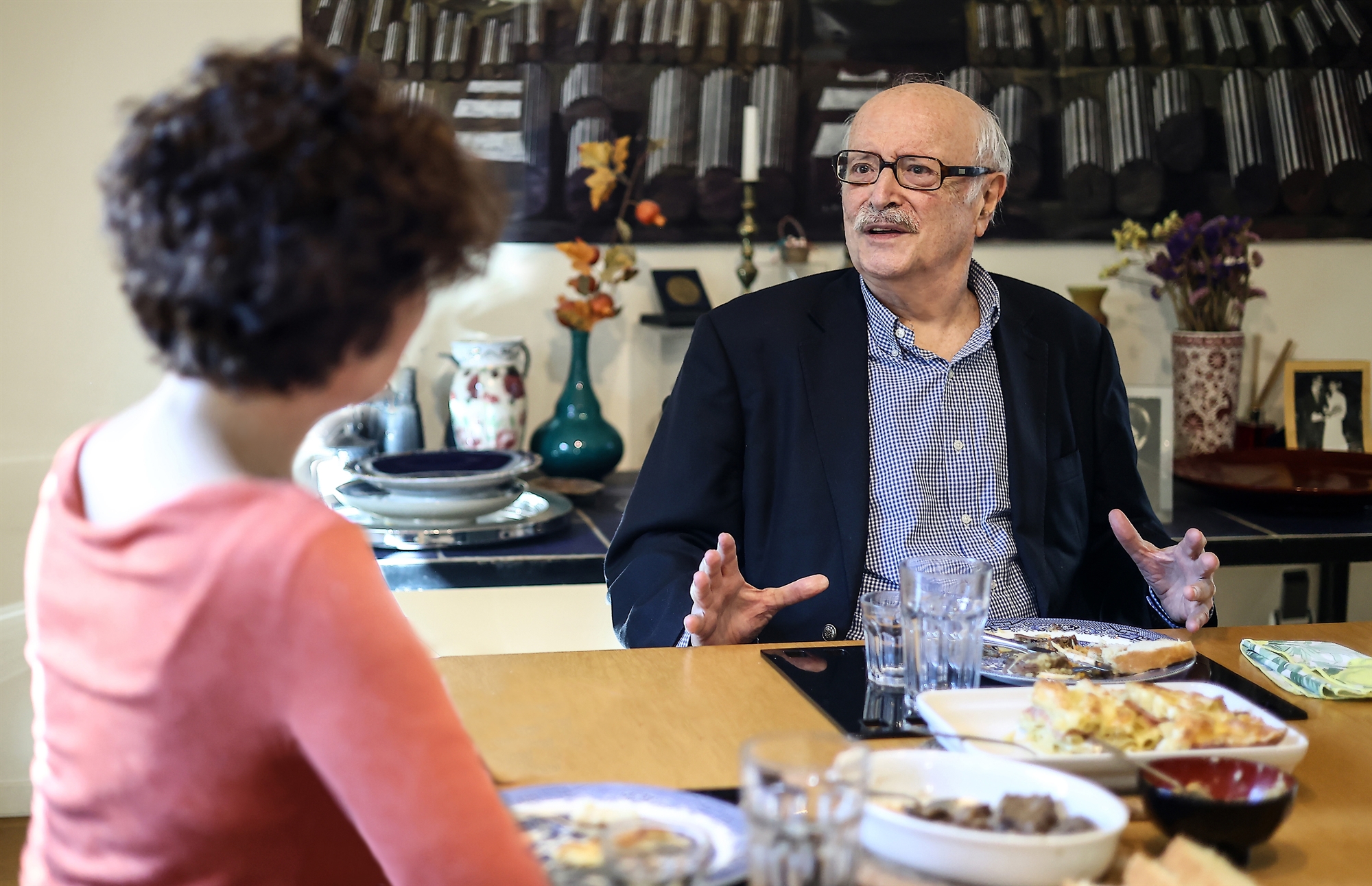 Σκέφτομαι πως η συνέντευξη άρχισε κάπως αντίστροφα. Από το τέλος, ανεβάζοντας γρήγορα συναισθηματική θερμοκρασία, ίσως γιατί και το γεύμα είχε σερβιριστεί από την έμπιστή του κυρία Γεωργία.
