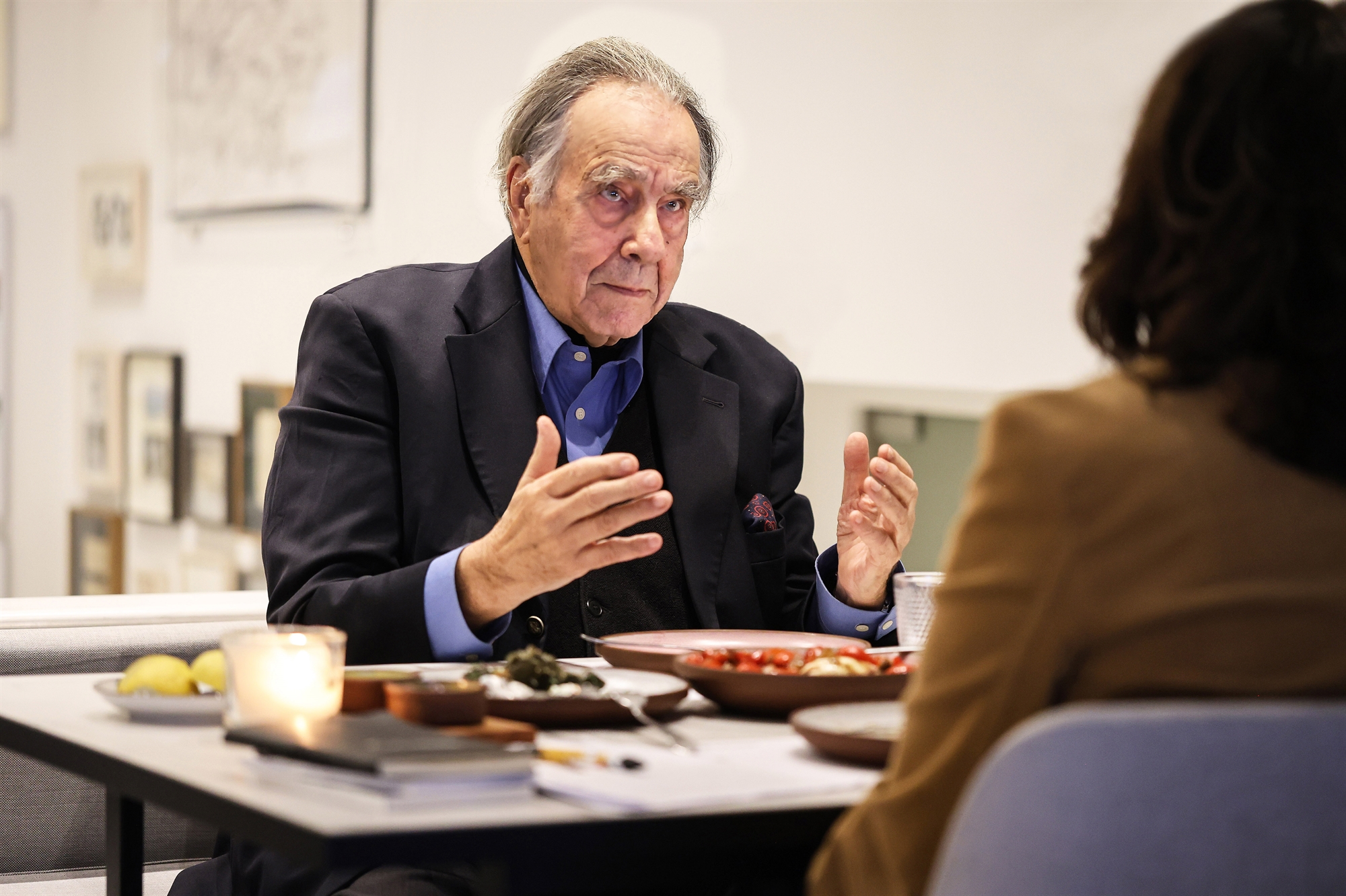 Για το γεύμα καθίσαμε οι δυο μας σε ένα ήσυχο τραπέζι στην άκρη της αίθουσας του εστιατορίου του Μουσείου Μπενάκη Ελληνικού Πολιτισμού, χώρο που ο κ. Βενετάς γνωρίζει πολύ καλά. Παραγγείλαμε ντολμαδάκια κασιώτικα, καθώς επέμενε να τα δοκιμάσω, και μια σαλάτα Μπουράτα. Ηπιε μια μπίρα χωρίς αλκοόλ, εγώ νερό και καφέ για το κλείσιμο του γεύματος. Οταν πλέον ολοκληρώθηκε η συζήτησή μας, μοιραστήκαμε με την κ. Χίμπνερ ένα τσιζκέικ με δύο κουταλάκια.