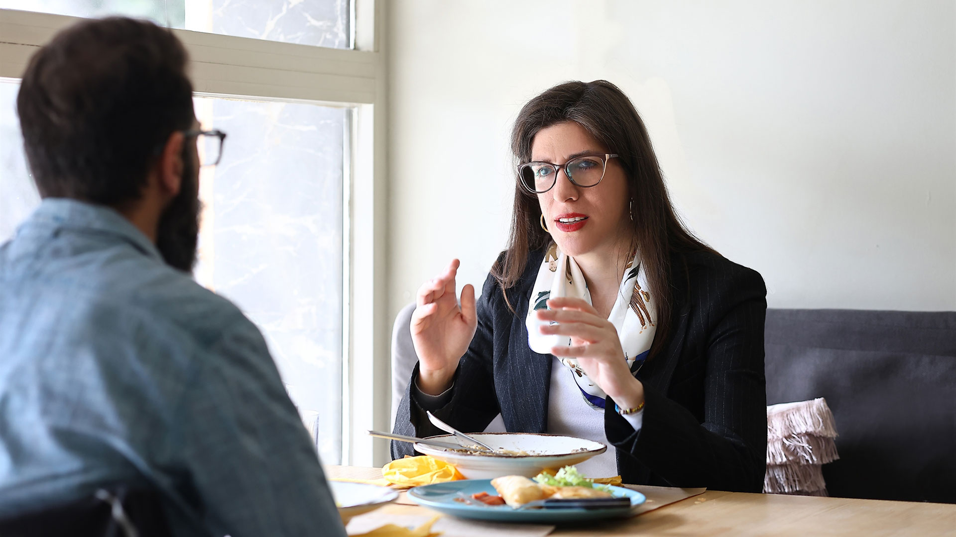 Γευματίσαμε στο ηλιόλουστο πατάρι του εστιατορίου Facce Strane (Βασ. Αλεξάνδρου 5-7). Για ορεκτικό επιλέξαμε πιτάκια γεμιστά με ελληνικά τυριά και για κύριο πιάτο εγώ έφαγα λιγκουίνι με προσούτο και σαφράν και η κ. Κουστένη λιγκουίνι με σάλτσα ταφτούφο και μανιτάρια. Το γεύμα μας κόστισε περίπου 35 ευρώ. Εκτός από τα θέματα προσβασιμότητας για ανθρώπους με προβλήματα όρασης, την κουβέντα μας απασχόλησε και η πρόοδος του αναπηρικού κινήματος. «Το αναπηρικό κίνημα πρέπει να μπει σε μια νέα εποχή, να ζητάμε ακριβώς αυτό που θέλουμε, τεκμηριωμένα. Είτε αφορά τα θέματα των μεταφορών, οικονομικές ενισχύσεις, τη φυσική και την ψηφιακή προσβασιμότητα», λέει. «Πρέπει να δουλέψουμε ακόμη και για την ισότιμη ένταξη όλων των παιδιών με αναπηρία όρασης στην υποχρεωτική εκπαίδευση, γιατί υπάρχουν ακόμη και σήμερα παιδιά που δεν έχουν ίσες ευκαιρίες».
