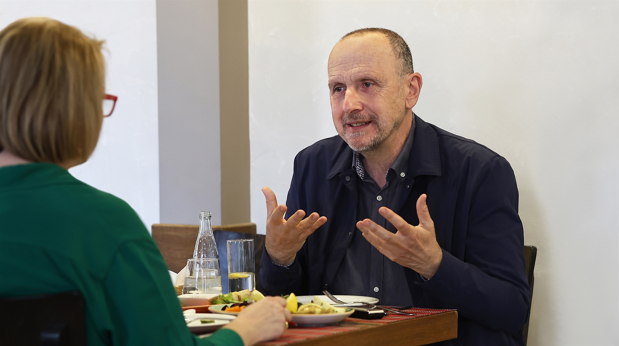 Ο Κων. Μπολέτης επέλεξε το καφέ του Βυζαντινού και Χριστιανικού Μουσείου, όπου μοιραστήκαμε spring rolls με γέμιση λαχανικών και σαλάτα βραστών λαχανικών. Σουρωτή και καφές ήταν τα ποτά μας (σύνολο 30 ευρώ). Μιλήσαμε για την Αθήνα που αλλάζει, ειδικότερα την Πλάκα. «Η γειτονιά αυτή έχει μετεξελιχθεί σε ένα είδος τουριστικού αποθετηρίου». Οσο για τις μουντζούρες στα κτίρια, «είναι ένας καρκίνος στην πόλη. Δεν μπορείς να πας κάπου και να μη δεις ένα ρύπο. Στο “Ακροπόλ Παλάς” στην Πατησίων, μόλις βγήκαν τα προστατευτικά, έγραψαν στα μάρμαρα “όχι μετρό στα Εξάρχεια”». Του αρέσει να φωτογραφίζει «ό,τι κινδυνεύει στην πόλη και χαμοκέλες σε χωριά, αγροτική αρχιτεκτονική». Αλλά και γάτες «με τη λογική ότι είναι θυμόσοφες, γι’ αυτό πάντα τις βάζω να λένε κάτι». «Είναι όλα εφήμερα και η αληθινή αγάπη χίμαιρα» μοιάζει να θυμοσοφεί μια από τις γάτες που φωτογράφισε.
