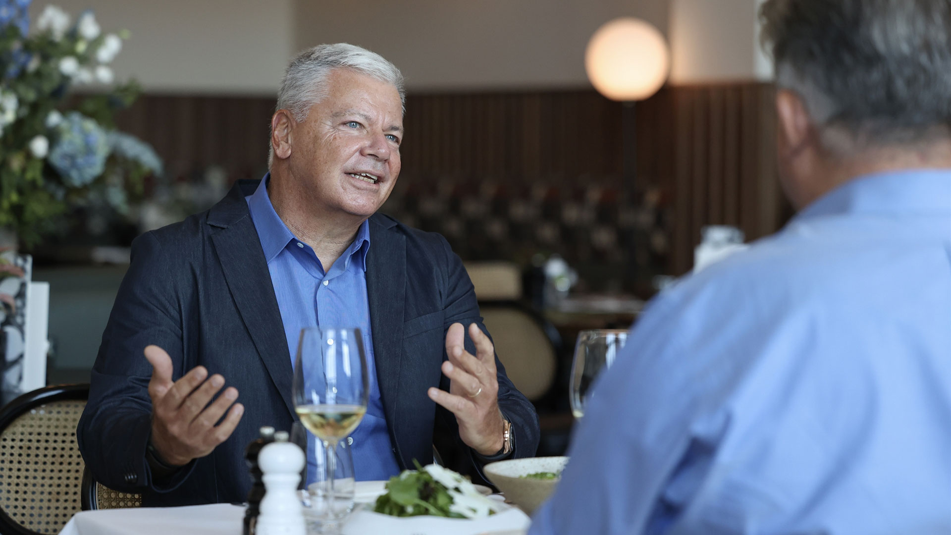 Και τι είναι αυτό που τον ηρεμεί; «Η θάλασσα», απαντά αυτοστιγμεί. «Εχω τη θάλασσα μέσα μου και δεν θα ήθελα να ζω μακριά της». Στις λίγες ημέρες που μπορεί να ξεκλέψει για διακοπές προτιμά να πηγαίνει «σε μέρη αυθεντικά, που σερβίρουν ελληνική κουζίνα και έχουν μείνει κατά το δυνατόν αλώβητα από παροδικές μόδες και τα πλήθη των επισκεπτών του καλοκαιριού».