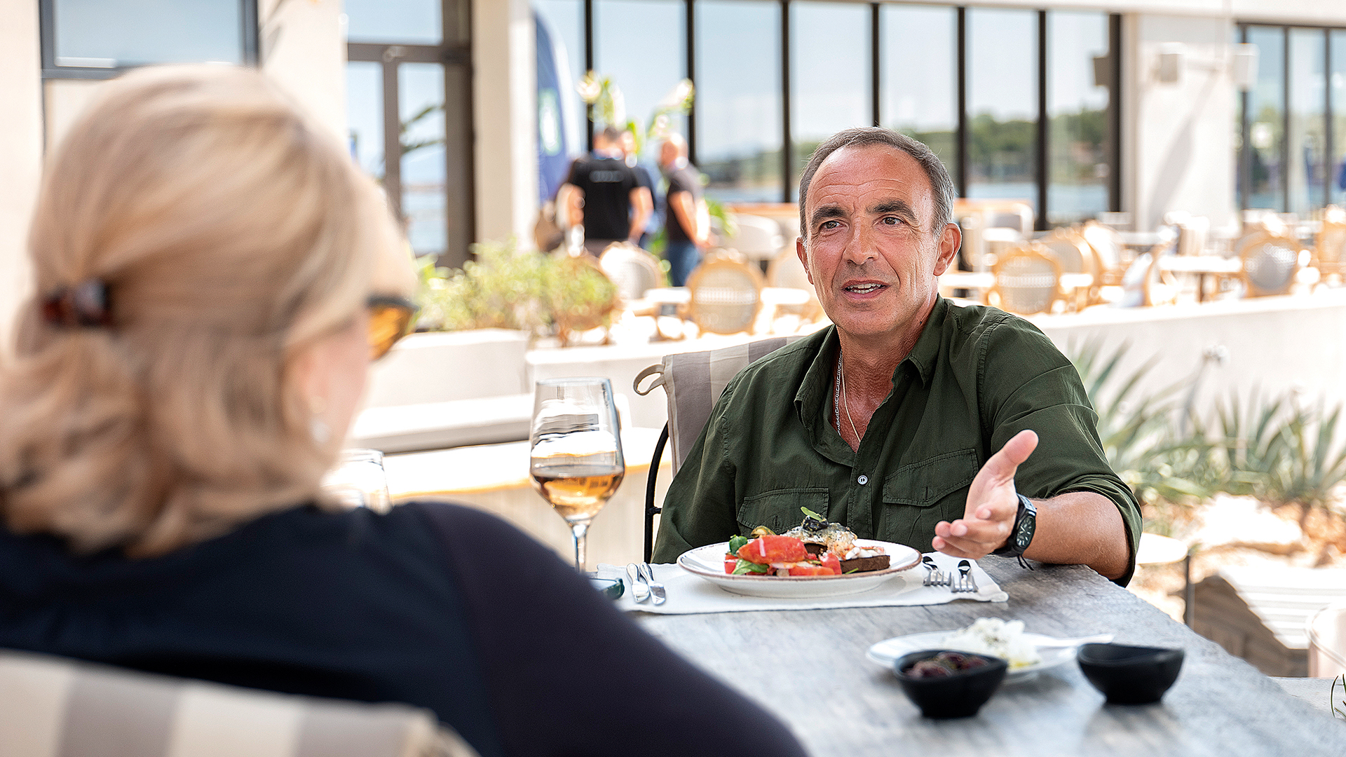 «Πω, πω, ρυτίδες που έχω… αλλά είναι ωραίο να βλέπεις τον χρόνο να περνάει. Τίποτε δεν είναι δεδομένο στη ζωή», είπε χαμογελώντας ο Νίκος Αλιάγας όταν ο φωτογράφος μας Βαγγέλης Ζαβός του έδειξε τις πρώτες λήψεις του γεύματος για την «Κ» σε ένα παραθαλάσσιο εστιατόριο στη Γλυφάδα. Αλλωστε, είναι έμπειρος χειριστής του φακού και ο ίδιος, καθώς αποτελεί το μεγάλο του πάθος. Ξέρει ότι τα πρόσωπα (και οι… ζάρες τους) λένε τις δικές τους ιστορίες: «Στην Ελλάδα ζούμε στη δικτατορία της νιότης στα ΜΜΕ, αλλά ο κόσμος ξέρει τελικά ποιος είναι καθένας», είπε ο δημοσιογράφος, παρουσιαστής, ραδιοφωνικός παραγωγός, τραγουδιστής και συγγραφέας. Σταρ –με μια λέξη– που πάντα και παντού διατρανώνει τις ρίζες του. Μια και η κουβέντα μας ξεκίνησε από τις συγκρίσεις ανάμεσα στις δύο χώρες «του», άδραξα την ευκαιρία και προτού μας φέρουν τα ορεκτικά μπήκα στο «κύριο πιάτο».