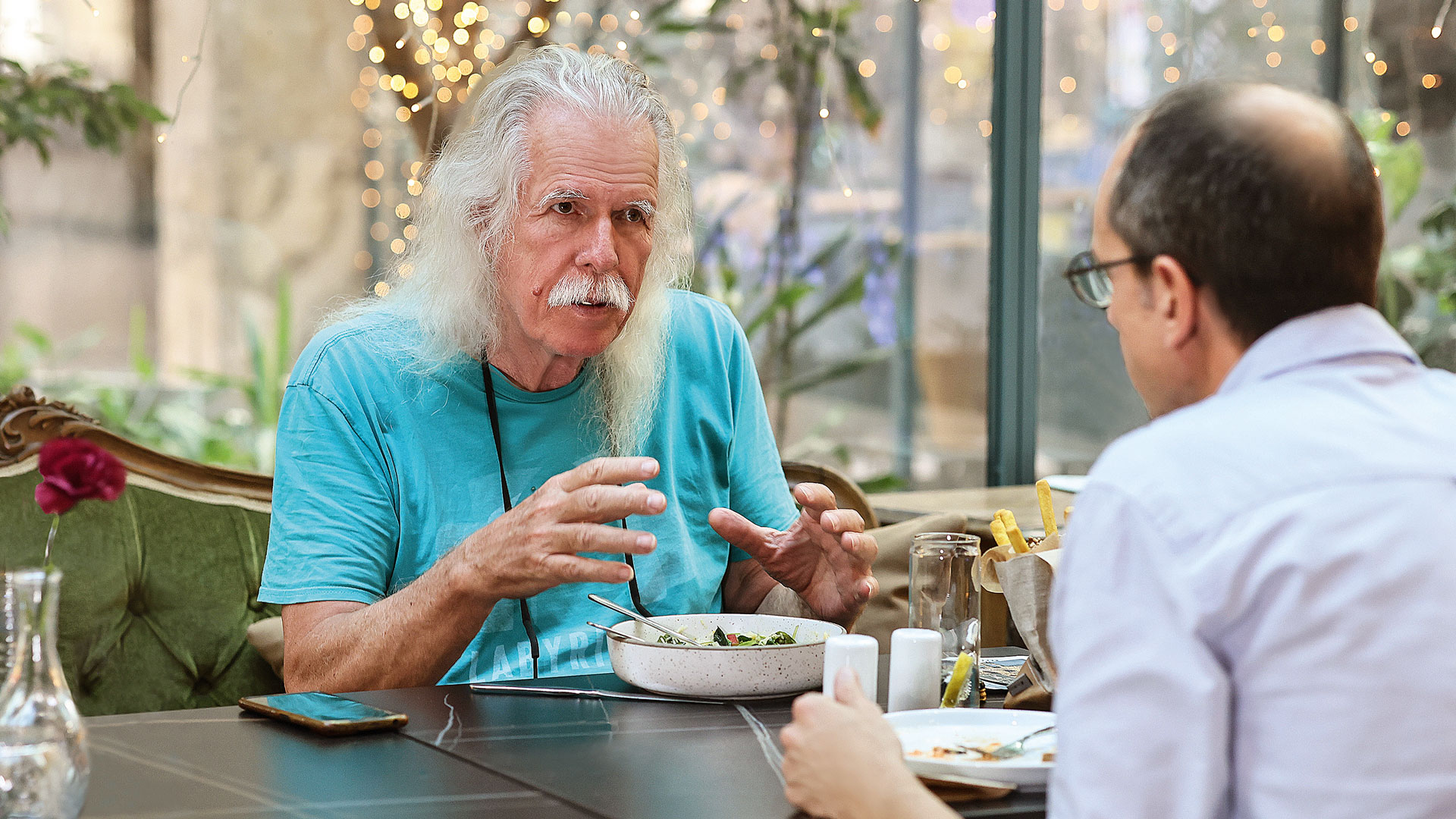 Διάλεξε το Gustav (Χαριλάου Τρικούπη 6-10), που φιλοξενεί συχνά ζωντανή μουσική και βρίσκεται στο αίθριο του εμπορικού κέντρου Atrium. Ηρθε στο ραντεβού μας επιστρατεύοντας μάλλον όσο χρόνο και χαλαρότητα διαθέτει κάποιος ενώ προετοιμάζεται για μια μεγάλη συναυλία. Λαχτάρησε μια πράσινη σαλάτα με παρμεζάνα, πεθύμησα έναν καγιανά. Ηπιαμε από ένα ανθρακούχο νερό και ενώ το σύνολο θα μας κόστιζε 25 ευρώ, το κατάστημα πρόσφερε ευγενικά το νόστιμο και ελαφρύ γεύμα μας.