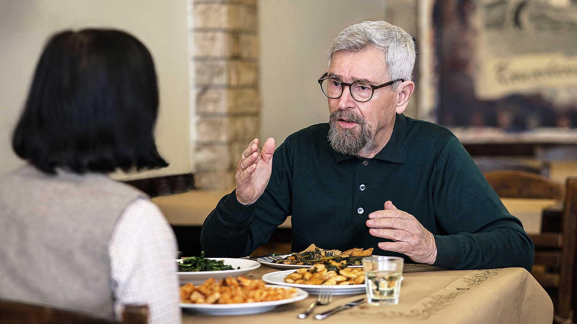 Η ταβέρνα του «Κουνούπη» είναι κοντά, γρήγορα παραγγέλνουμε το φαγητό μας και ξεκινάμε τη συζήτηση. Επηρεάζει σήμερα η τέχνη τη ζωή μας; «Η τέχνη είναι το αντίδοτο της βαρβαρότητας. Δαμάζει τη βάναυση και παράλογη πλευρά της ζωής. Λέει κάπου ο Νίτσε ότι το σιγανό βέλος της τέχνης εισχωρεί σταδιακά στις ψυχές των ανθρώπων και τους μεταμορφώνει. Οπου κατά την αρχαιότητα υπήρξε τέχνη, αναπτύχθηκε κι ένας μεγάλος πολιτισμός, φτιάχτηκαν ενεργοί πολίτες. Ομως η τέχνη ήταν μέσα στην καθημερινότητά τους. Σήμερα η τέχνη είναι έξω από τη ζωή του πολίτη. Είναι αποκαρδιωτικό για την Ελλάδα, μια χώρα με τέτοια Ιστορία, με τόσο καθηλωτικά ανεπανάληπτα έργα, να βρίσκεται σήμερα σ’ αυτό το χάλι. Δεν έχουμε συνείδηση τι τόπο πατάμε».
