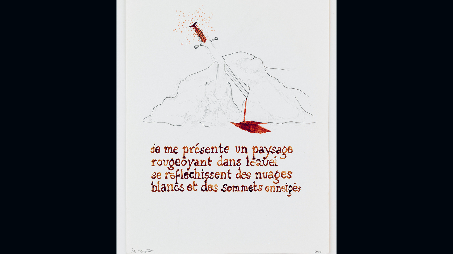 Τα σχέδια είναι στην πραγματικότητα, όπως μας ενημερώνει η επιμελήτρια, «η εικαστική συνέχεια της ομώνυμης performance, για την οποία, έπειτα από ανάθεση του 55ου φεστιβάλ της Αβινιόν το 2001, συνέγραψε ένα μεσαιωνικού τύπου ποιητικό έργο, που στη συνέχεια σκηνοθέτησε και σκηνογράφησε ως επιτελεστικό πολυθέαμα».