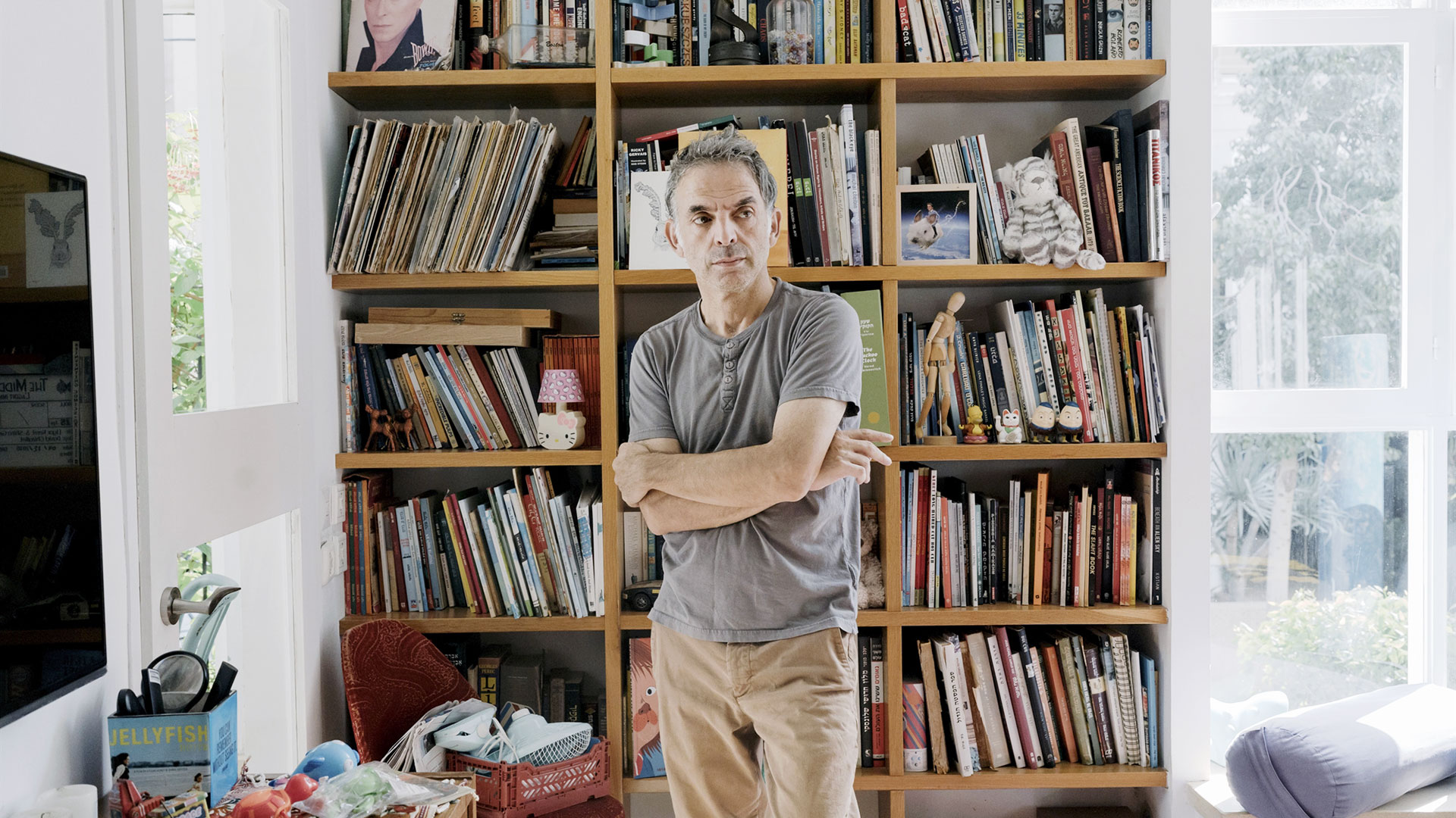 Ο ίδιος είναι στο σπίτι του, στο Τελ Αβίβ. Εξω στους δρόμους η ζωή συνεχίζεται, ανάμεσα σε σειρήνες, βομβαρδισμούς και κηδείες. «Νομίζω ότι διαρκώς υπάρχει μια αντίφαση. Μπορείς να δεις μια γυναίκα να τσακώνεται με κάποιον στο σούπερ μάρκετ για την τιμή της ντομάτας και να βρίζονται και όλα μοιάζουν πολύ φυσιολογικά. Μετά ακούγονται οι σειρήνες και τρέχουν να κρυφτούν μαζί και αυτός τη βοηθάει και την παρηγορεί και μετά τελειώνει ο συναγερμός και επιστρέφουν και συνεχίζουν να βρίζουν ο ένας τον άλλον και να μιλούν για τις ντομάτες. Και δεν ξέρεις ποιος κόσμος είναι ο αληθινός κόσμος. Ο κόσμος στον οποίο είσαι τρομοκρατημένος και αβοήθητος ή ίσως ο κόσμος που παίζεις με το κατοικίδιό σου και τσακώνεσαι για τις ντομάτες;».