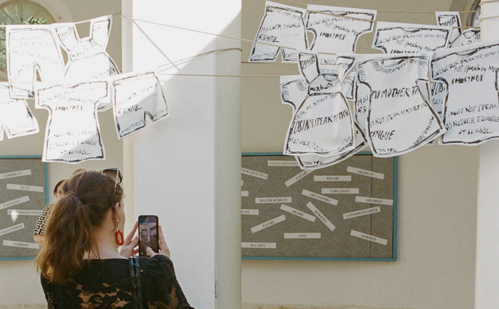 Η καλλιτέχνις αποφάσισε να επικεντρωθεί στο θέμα της γλωσσικής καταπίεσης και έτσι ξεκίνησε μια έρευνα σχετικά με τις «απαγορευμένες γλώσσες», εκείνες που κανείς μιλάει στο σπίτι του αλλά δεν συναντά ποτέ στα επίσημα έγγραφα μιας χώρας, αυτές που δεν βρίσκουν ποτέ θέση στα σχολικά βιβλία ή που κινδυνεύουν να σβήσουν γιατί χάνονται οι κοινότητες που τις μιλούν. «Το πρώτο πλήγμα που επιχειρείς σε έναν λαό ή μια κοινότητα όταν θες να επιβληθείς είναι η γλώσσα του», λέει στην «Κ». Στη διάρκεια της σύντομης έρευνάς της –σχεδόν 3 μήνες– κατέγραψε περισσότερα από 100 γλωσσικά ιδιώματα (ποντιακά, γαελικά, ελληνικά της Καππαδοκίας, ουαλικά, αστουριανά, αρβανίτικα) που ζουν στο περιθώριο μιας επίσημης γλώσσας.