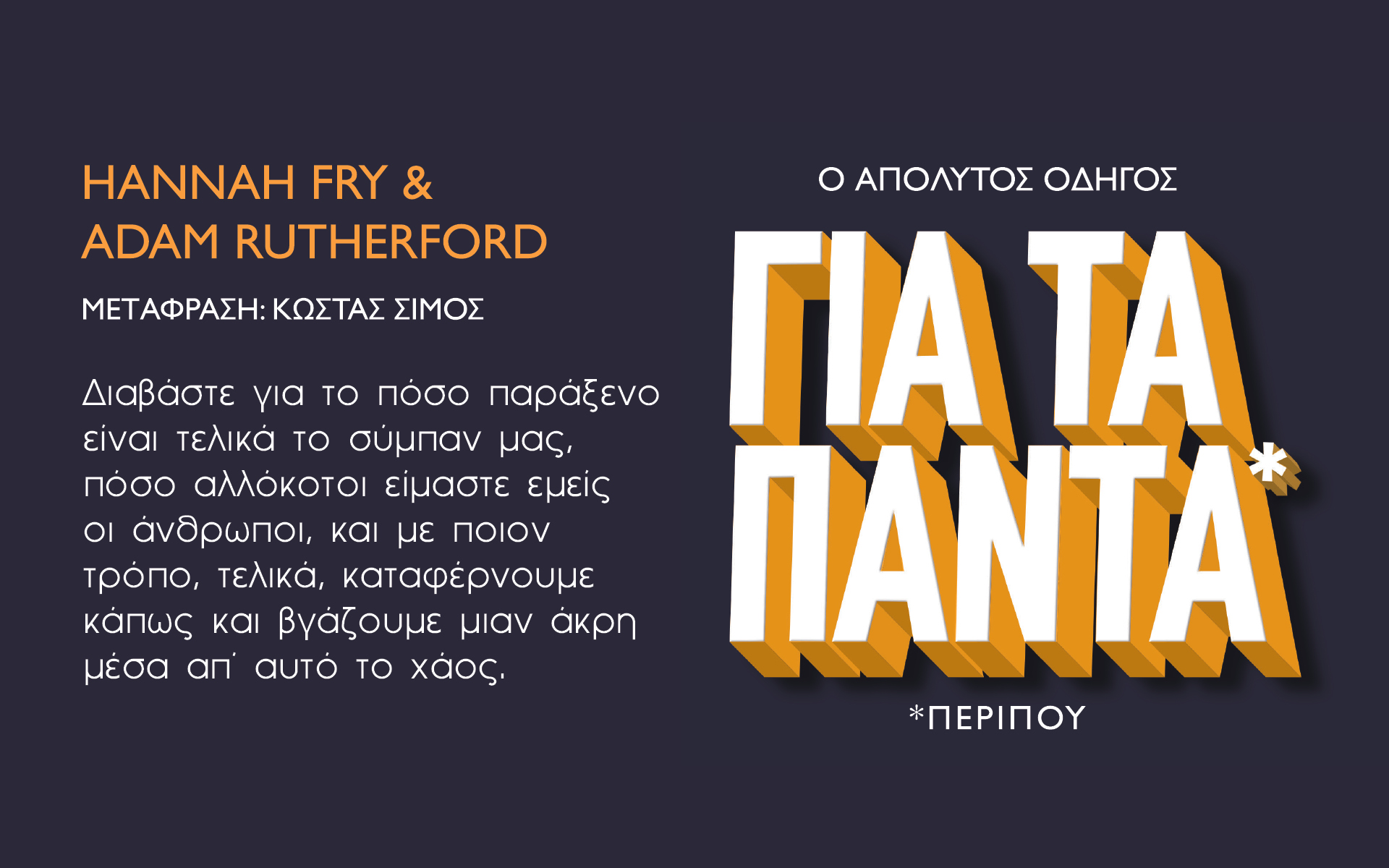 Ο εγκέφαλός μας έχει πλαστεί από την εξέλιξη έτσι ώστε να μας ψιθυρίζει πράγματα τα οποία μοιάζουν, αλλά δεν είναι σωστά: η Γη είναι επίπεδη, τα άστρα στέκουν ακίνητα στο ουράνιο στερέωμα, μια μέρα διαρκεί 24 ώρες… Το βιβλίο αυτό έρχεται για να σας πει πώς είναι όντως τα πράγματα. Με τη δύναμη της επιστήμης, οι Ράδερφορντ και Φράι μάς δείχνουν τρόπους για να παρακάμπτουμε τη ζωώδη νόησή μας. σε ένα ταξίδι που. από τις απαρχές του χρόνου και του χώρου, καταλήγει, μέσα από την εξερεύνηση των πλανητών, των γαλαξιών, της εξέλιξης και των δεινοσαύρων, στα άδυτα του ίδιου του εγκεφάλου μας. γυρεύοντας απαντήσεις σε σπαζοκεφαλιές που μόνο η επιστήμη μπορεί να απαντήσει: