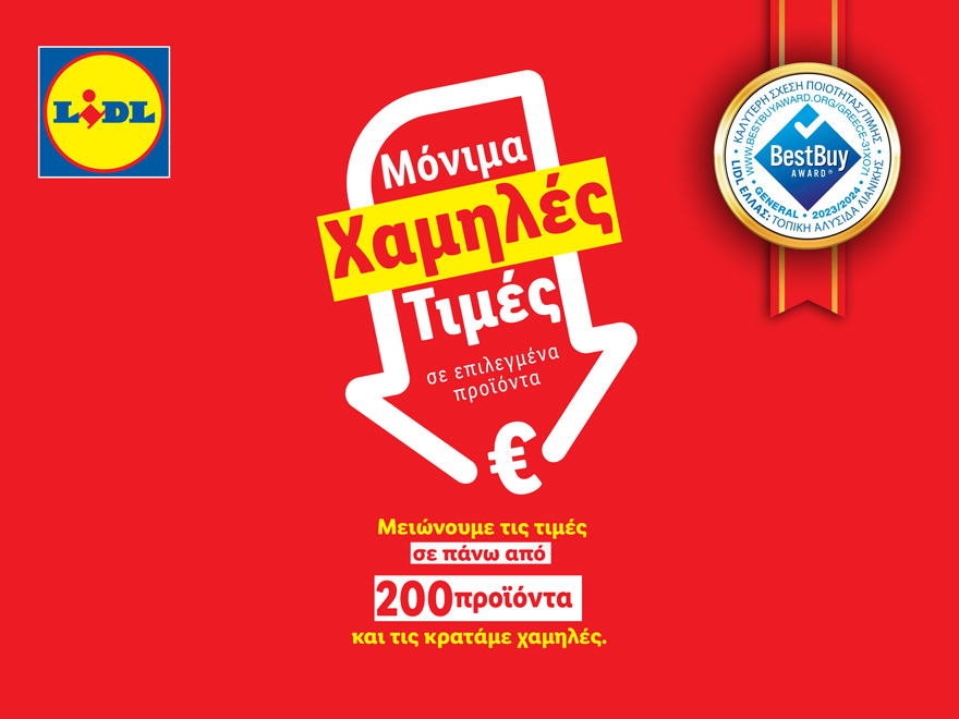 Με πρωταρχική δέσμευσή της να προσφέρει την καλύτερη ποιότητα στην καλύτερη τιμή, η Lidl Ελλάς εξασφαλίζει μόνιμα χαμηλές τιμές σε πάνω από 200 προϊόντα έως 35%.