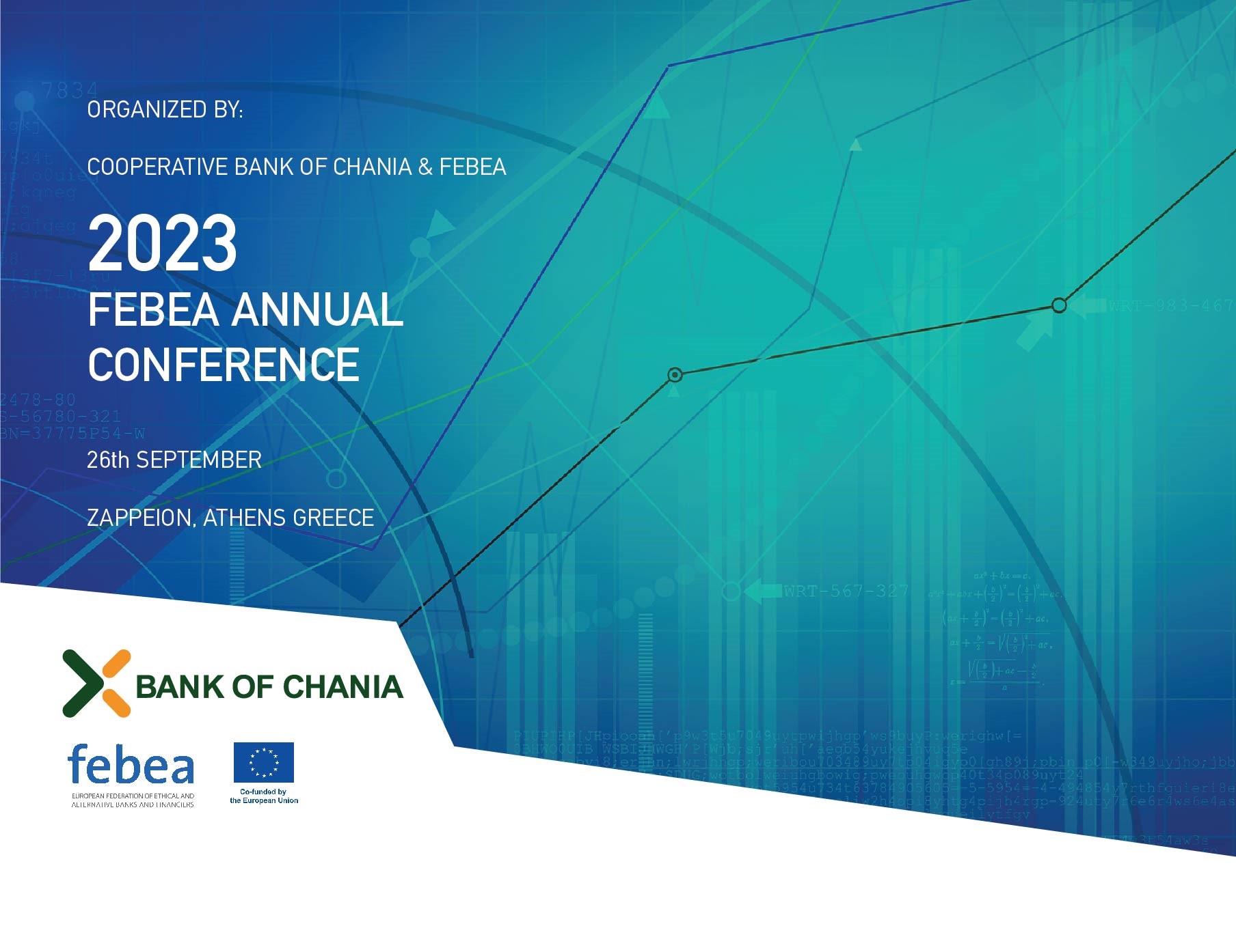 Το Συνέδριο και την Ετήσια Γενική Συνέλευση των Μελών της Ευρωπαϊκής Ομοσπονδίας Ηθικών και Εναλλακτικών Τραπεζών και Χρηματοδοτών FEBEA (European Federation of Ethical and Alternative Banks and Financiers), διοργανώνει ως μέλος της, η Συνεταιριστική Τράπεζα Χανίων, από τις 25 έως τις 27 Σεπτεμβρίου 2023, στην Αθήνα.