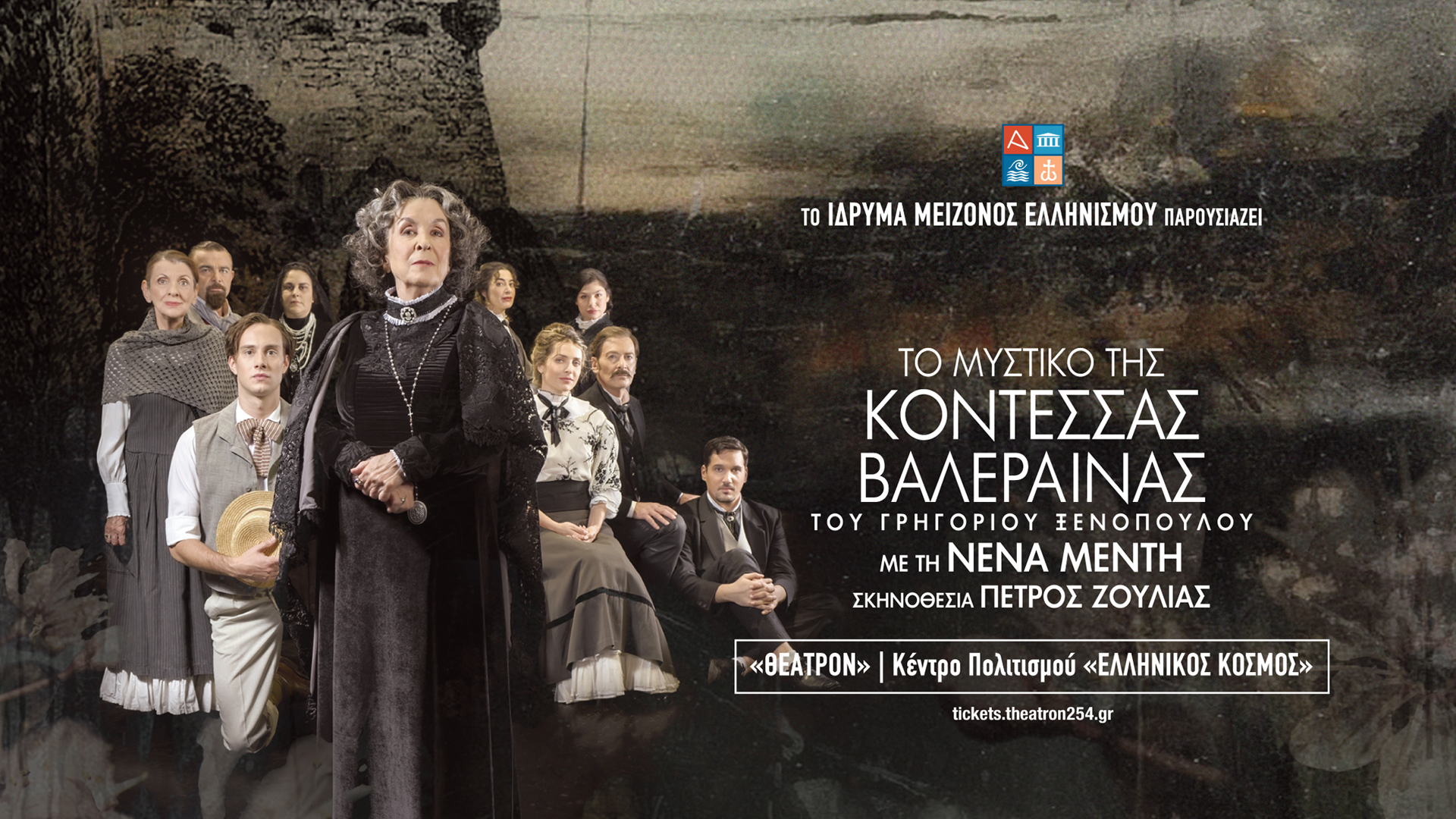 Το Ίδρυμα Μείζονος Ελληνισμού παρουσιάζει από τις 20 Δεκεμβρίου το θεατρικό έργο «Το Μυστικό της Κοντέσσας Βαλέραινας» του Γρηγορίου Ξενόπουλου στο «ΘΕΑΤΡΟΝ» του Κέντρου Πολιτισμού «Ελληνικός Κόσμος». Τη σκηνοθεσία του κλασικού ελληνικού έργου, που θεωρείται το αριστούργημα του Γρηγορίου Ξενόπουλου υπογράφει ο Πέτρος Ζούλιας και τον ρόλο της Κοντέσσας Βαλέραινας υποδύεται η διακεκριμένη ηθοποιός Νένα Μεντή.