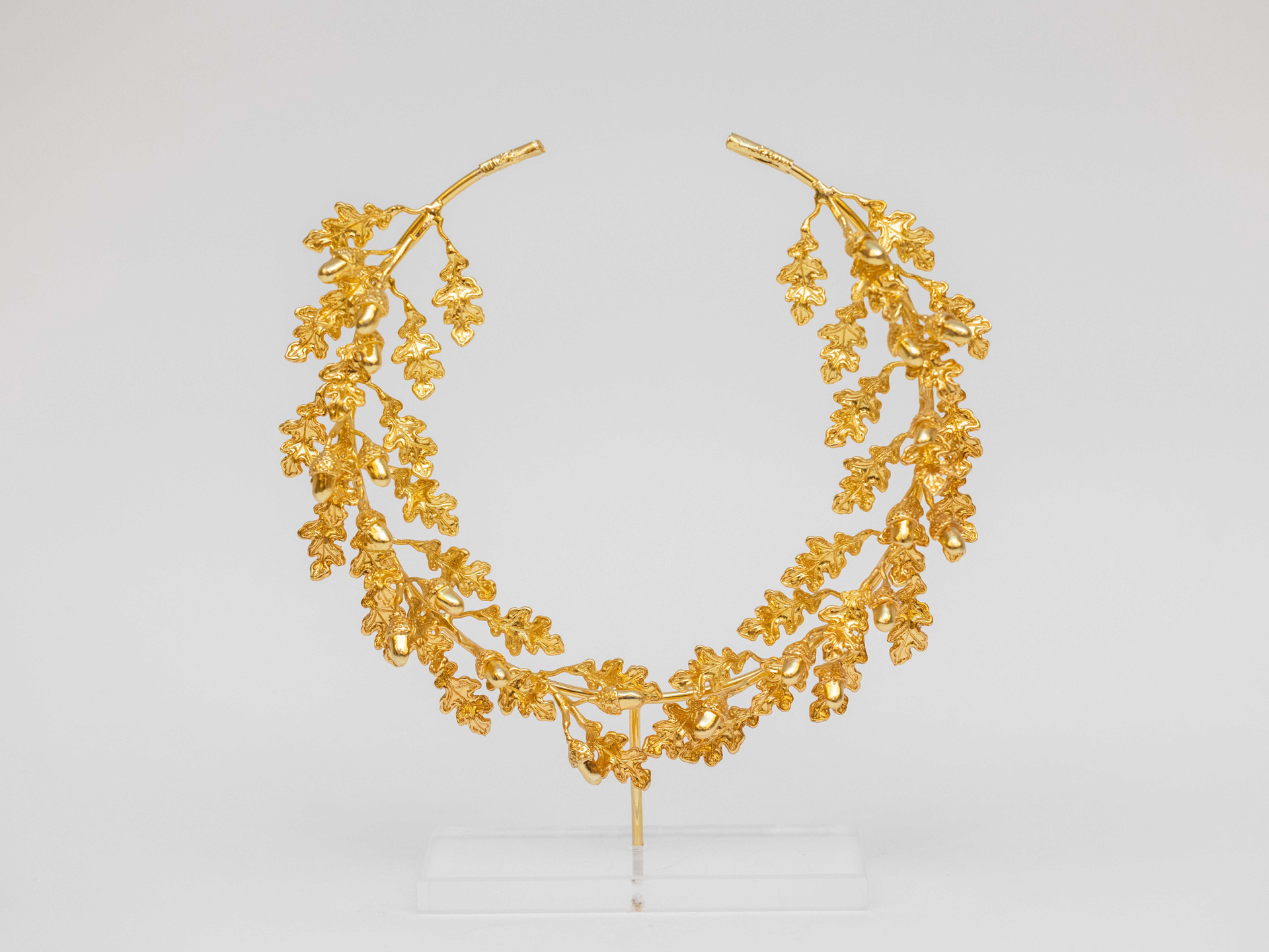 Τα μακεδονικά στεφάνια, αριστουργήματα της αρχαίας μεταλλοτεχνίας, κοσμούσαν τα κεφάλια ανδρών, γυναικών και παιδιών σε ιδιαίτερα σημαντικές στιγμές της ζωής τους και ήταν πάντα συνδεδεμένα με τη μυθολογία και τους θεούς προσδίδοντας ξεχωριστές ιδιότητες σε όσους τα φορούσαν.