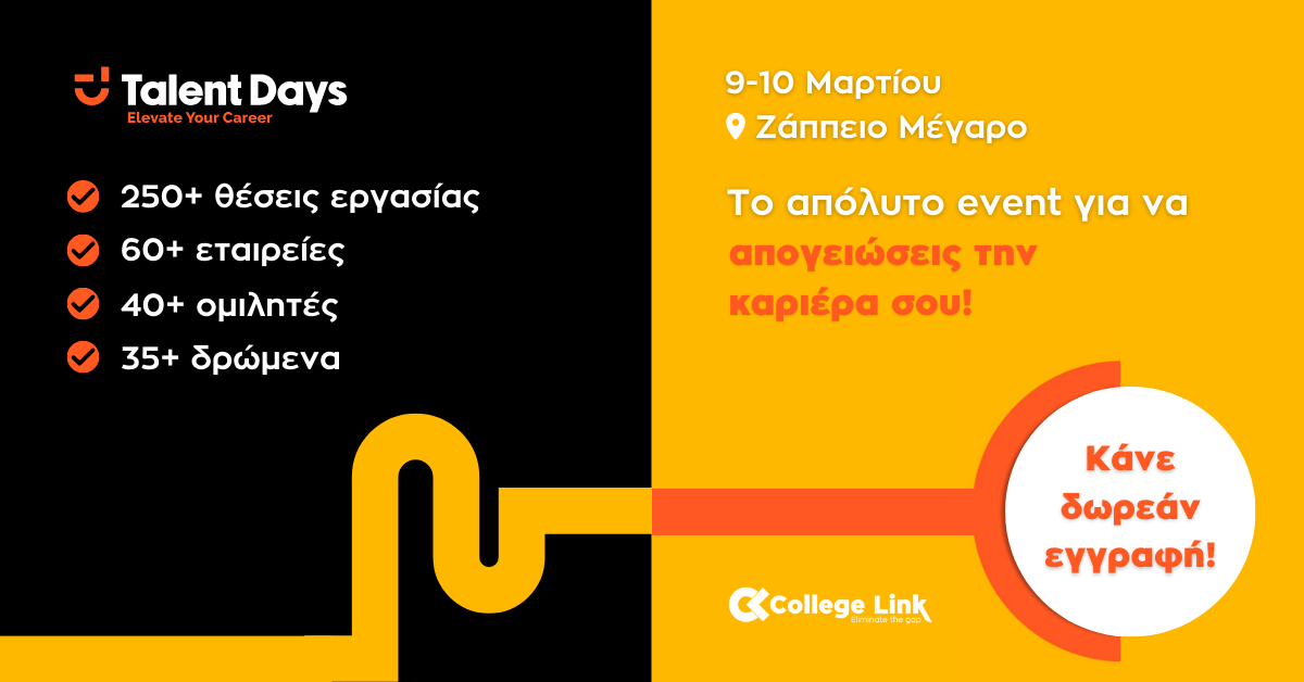 Έλα στα Talent Days της CollegeLink, το Σάββατο 9 και την Κυριακή 10 Μαρτίου στο Ζάππειο Μέγαρο!