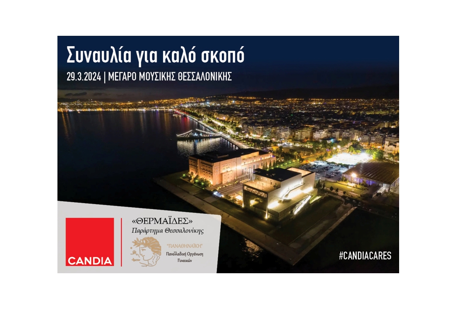 Η CANDIA συμμετέχει ως Χορηγός στη φιλανθρωπική βραδιά που διοργανώνει το Μέγαρο Μουσικής Θεσσαλονίκης και η εταιρεία Λυκόφως, την Παρασκευή 29 Μαρτίου 2024, σε συνεργασία με το τμήμα Πολιτισμού και Τουρισμού του Δήμου Θεσσαλονίκης και τις ΘΕΡΜΑΪΔΕΣ.