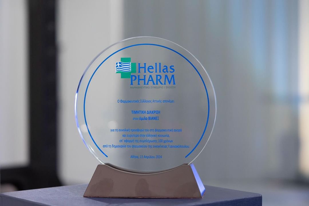Ο Όμιλος ΒΙΑΝΕΞ, η μεγαλύτερη φαρμακευτική εταιρεία στην Ελλάδα, έλαβε μια ιδιαίτερη τιμητική διάκριση στο ετήσιο φαρμακευτικό συνέδριο Hellas Pharm 2024, με αφορμή τη συμπλήρωση 100 χρονών παρουσίας και συνολικής προσφοράς του, τόσο στη φαρμακευτική αγορά, όσο και ευρύτερα στην ελληνική κοινωνία.