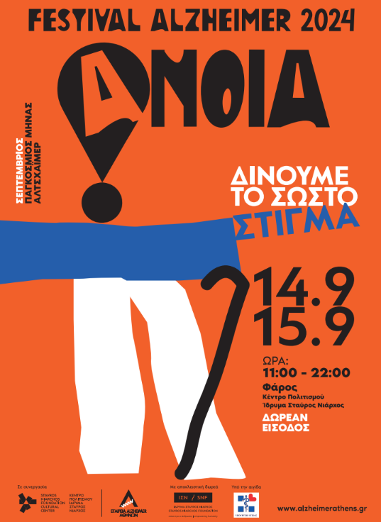 Περισσότερες πληροφορίες για το Festival Alzheimer 2024 στις ιστοσελίδες www.alzheimerathens.gr και www.snfcc.org.