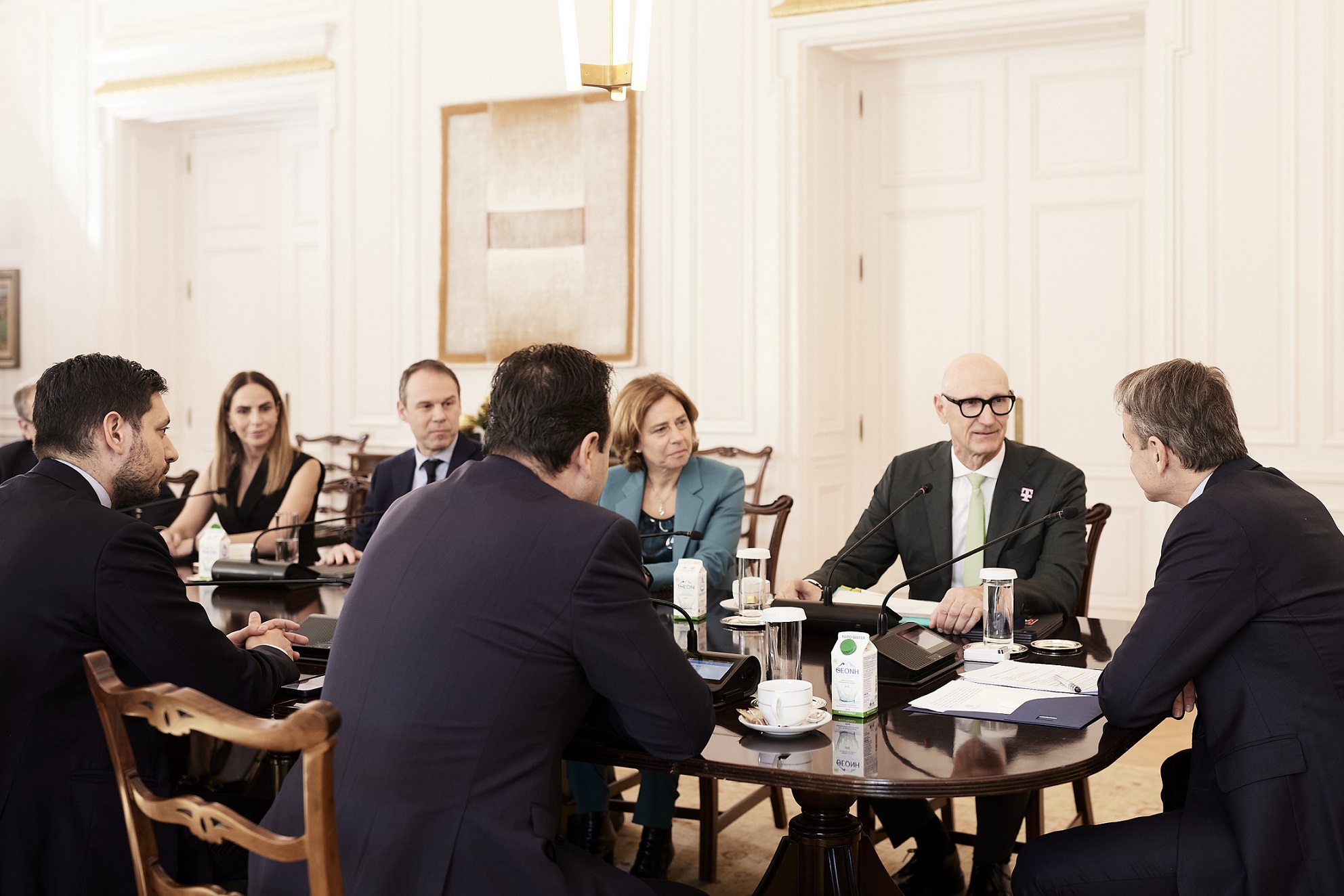 Συνάντηση εργασίας με τον Πρωθυπουργό, κ. Κυριάκο Μητσοτάκη, στο Μέγαρο Μαξίμου, πραγματοποίησε ο CEO του Ομίλου Telekom, κ. Tim Höttges. Στη συνάντηση συμμετείχαν οι Υπουργοί Ψηφιακής Διακυβέρνησης, κ. Δημήτρης Παπαστεργίου και Επικρατείας, κ. Άκης Σκέρτσος, και οι Υφυπουργοί Ψηφιακής Διακυβέρνησης, κ. Κωνσταντίνος Κυρανάκης και παρά τω Πρωθυπουργώ, κ. Γιώργος Μυλωνάκης, καθώς και η επικεφαλής της Telekom για την Ευρώπη, κα Dominique Leroy, ο Senior Vice President for Group Public and Regulatory Affairs της Telekom, κ. Wolfgang Kopf, ο Πρόεδρος και Διευθύνων Σύμβουλος του Ομίλου ΟΤΕ, κ. Κώστας Νεμπής, και η Νομική Σύμβουλος, Chief Officer Νομικών & Ρυθμιστικών Θεμάτων, Public Affairs & Εταιρικής Διακυβέρνησης Ομίλου ΟΤΕ, κα Ειρήνη Νικολαΐδη.