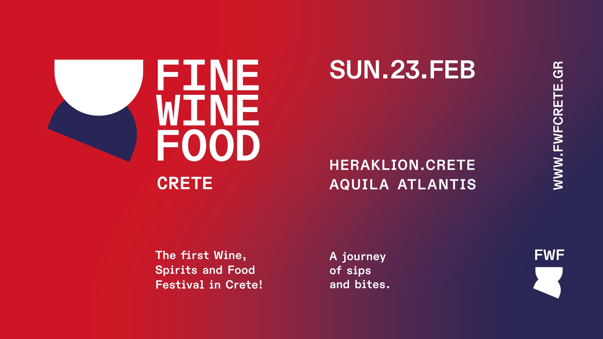 Την Κυριακή 23 Φεβρουαρίου 2025 από τις 11:00 έως τις 21:00 στο ξενοδοχείο Aquila Atlantis Hotel στο Ηράκλειο Κρήτης καλούμε επαγγελματίες του χώρου της εστίασης και του τουρισμού καθώς και όλους τους λάτρεις του οίνου και της γαστρονομίας σε ένα συναρπαστικό γευστικό ταξίδι.