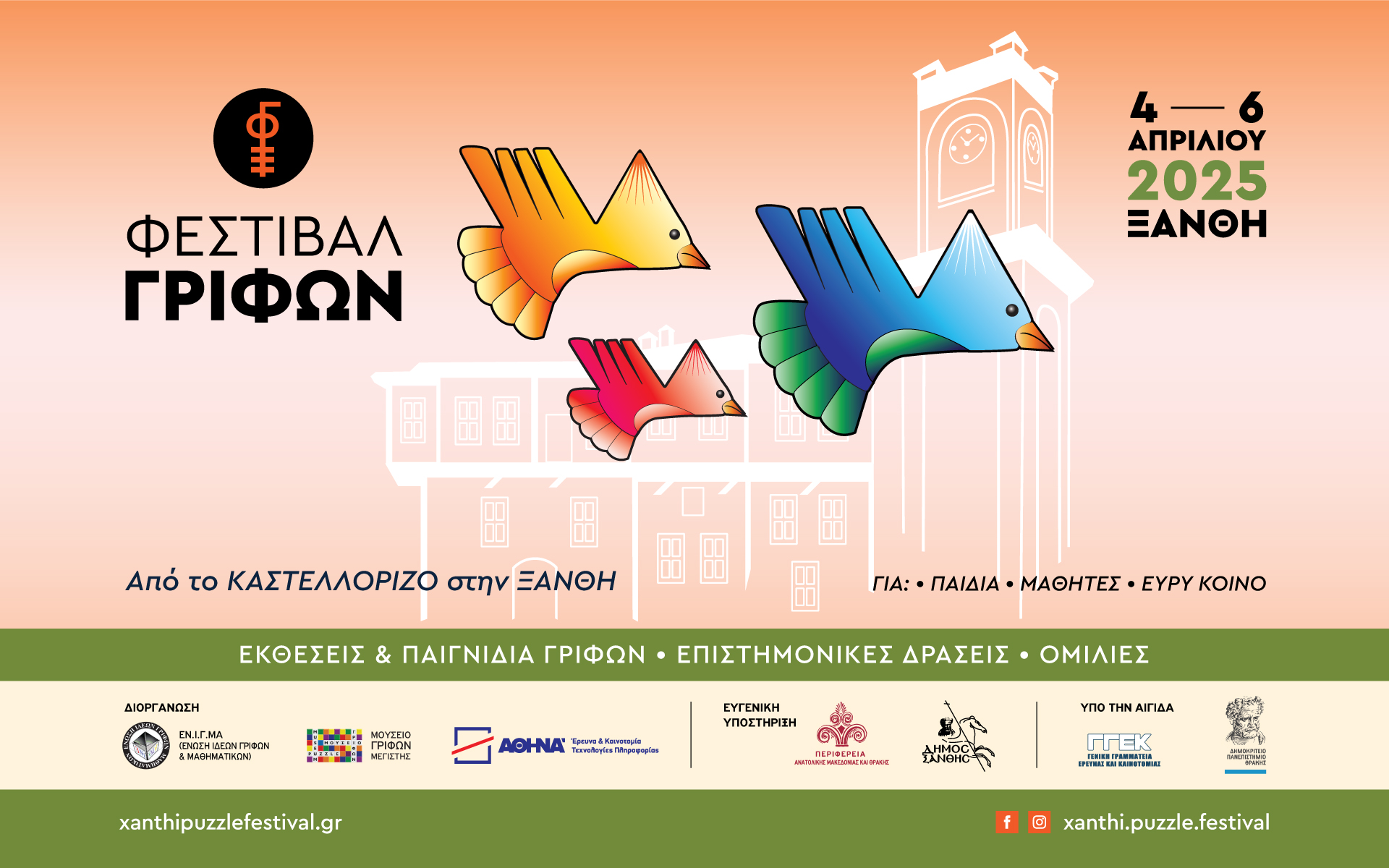 Μετά από τέσσερα χρόνια επιτυχούς διοργάνωσης, το Φεστιβάλ Γρίφων (ΦΓ), ένας καινοτόμος θεσμός που συνδυάζει επιστήμη, τεχνολογία, γρίφους και τέχνη, επεκτείνει τα σύνορά του και φτάνει στην Ξάνθη.