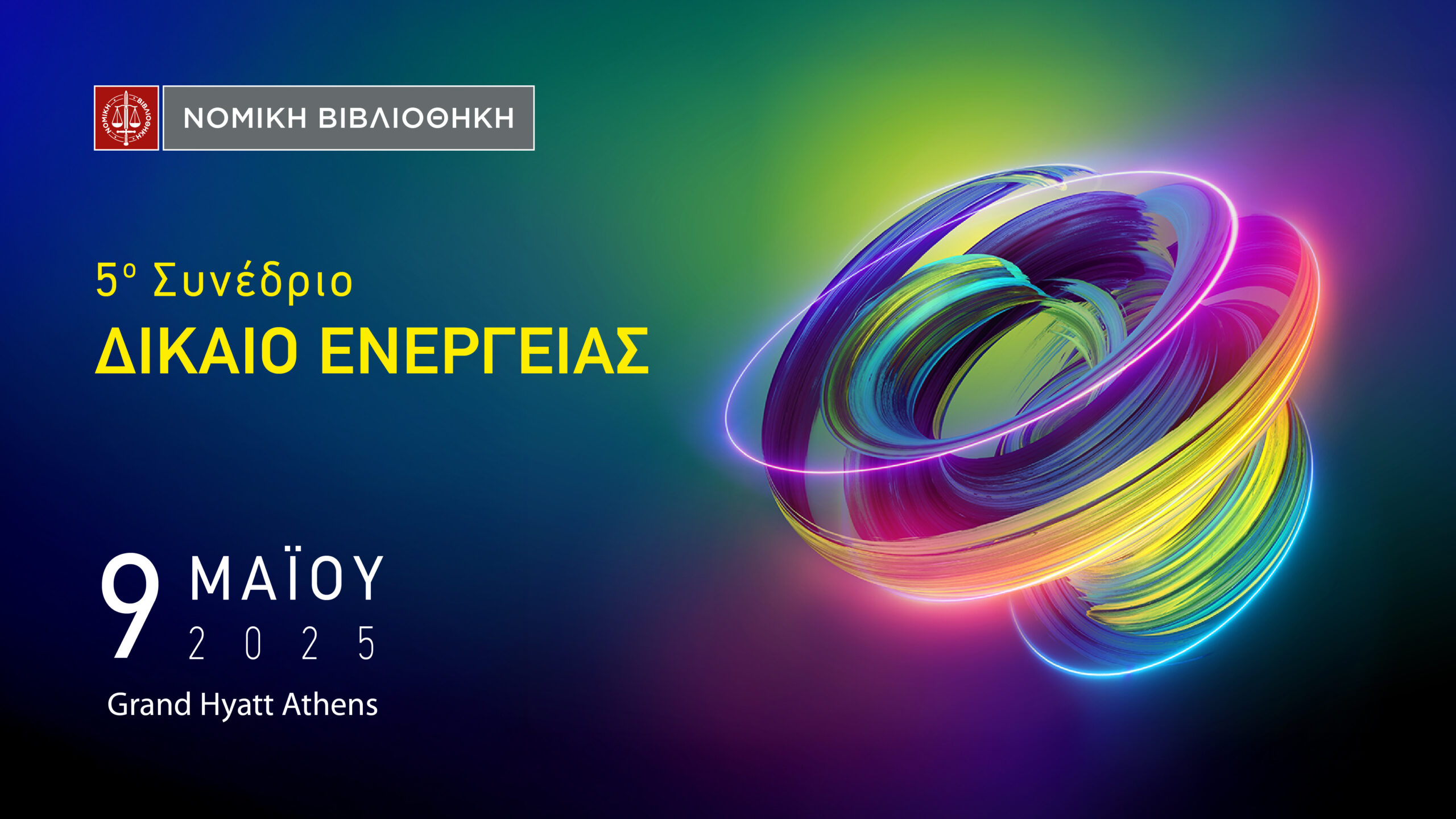 Το 5ο Συνέδριο για το ΔΙΚΑΙΟ ΤΗΣ ΕΝΕΡΓΕΙΑΣ, διοργανώνει η ΝΟΜΙΚΗ ΒΙΒΛΙΟΘΗΚΗ, σε συνεργασία με το επιστημονικό περιοδικό «Περιβάλλον & Δίκαιο» την Παρασκευή 9 Μαΐου 2025 διά ζώσης στο Grand Hyatt Athens.