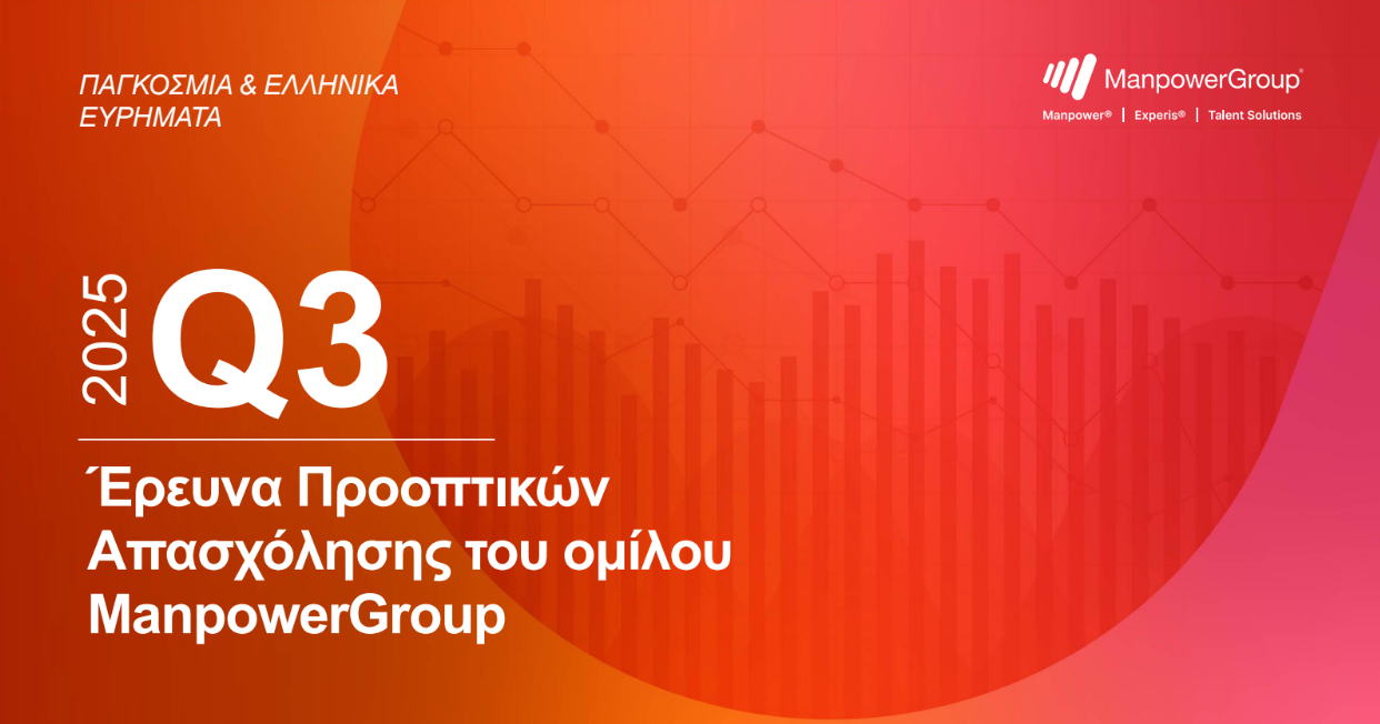 Σύμφωνα με τη νέα Έρευνα Προοπτικών Απασχόλησης του ομίλου ManpowerGroup στην οποία συμμετείχαν 525 Έλληνες εργοδότες, οι προσδοκίες απασχόλησης ανέρχονται σε 11% το 3ο τρίμηνο του 2025 αυξημένες κατά 4 μονάδες από το προηγούμενο τρίμηνο, παραμένοντας όμως αμετάβλητο σε σχέση με την αντίστοιχη περίοδο του προηγούμενου έτους. Το 30% των εργοδοτών που σκοπεύουν να προσλάβουν ανέφεραν ότι η εταιρεία τους επεκτείνεται σε μέγεθος, δημιουργώντας περισσότερες θέσεις. Για τους εργοδότες που αναμένουν μείωση του προσωπικού το 3ο τρίμηνο, η οικονομική αβεβαιότητα αναφέρεται ως η κύρια πρόκληση, ακολουθούμενη από την προσαρμογή στις αλλαγές της αγοράς.
