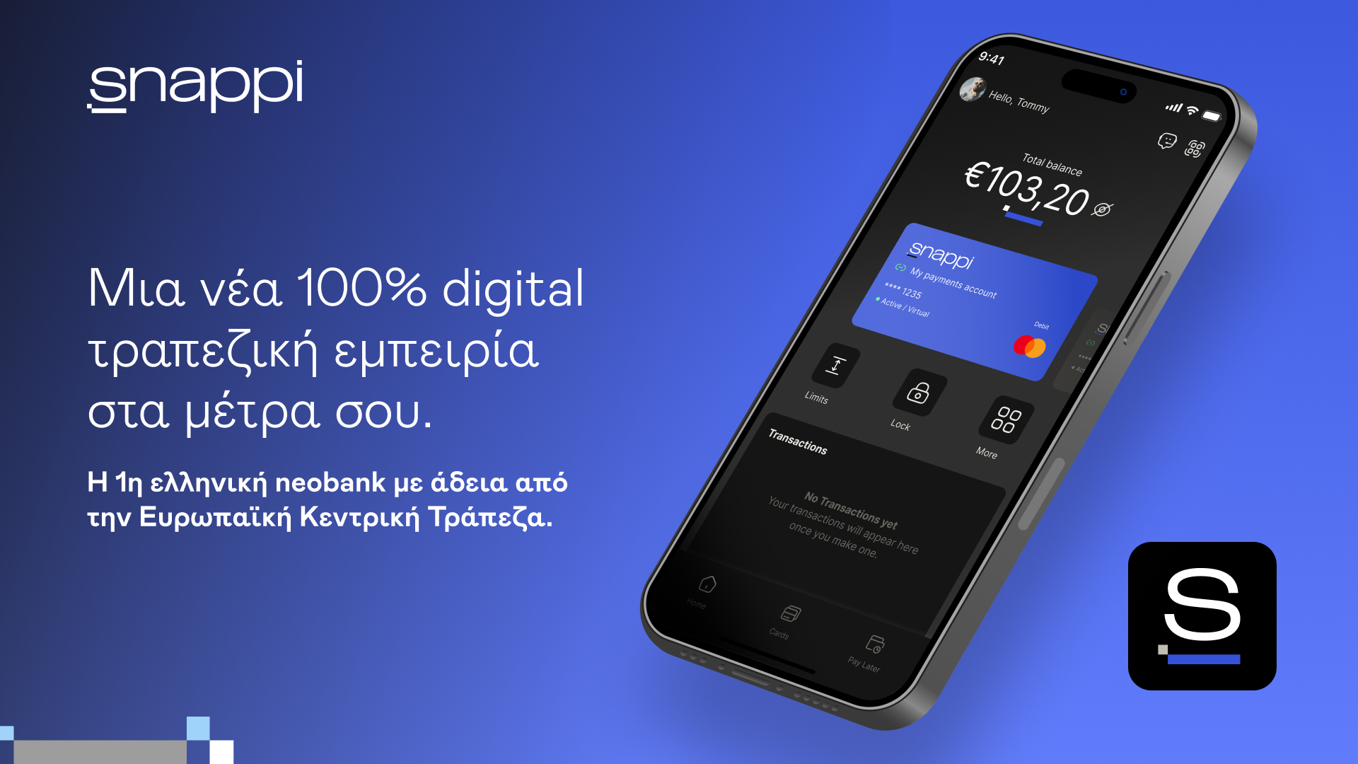 Η Snappi, η πρώτη ελληνική neobank αδειοδοτημένη από την Ευρωπαϊκή Κεντρική Τράπεζα (ΕΚΤ), ανακοινώνει την έναρξη διάθεσης της εφαρμογής της αρχικά σε όλους τους Έλληνες φορολογούμενους μέσω App Store και Google Play.