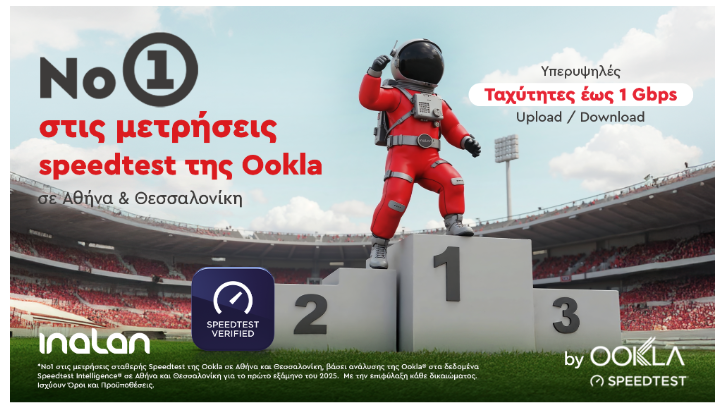 Η INALAN, πάροχος συμμετρικού και αξιόπιστου Internet, αναδείχθηκε για μία ακόμη φορά η ταχύτερη στις μετρήσεις σταθερής σύνδεσης, σύμφωνα με ανάλυση της Ookla® στα δεδομένα Speedtest Intelligence® για το πρώτο εξάμηνο του 2025, σε Αθήνα και Θεσσαλονίκη, στα σημεία όπου υφίσταται το δίκτυό της.