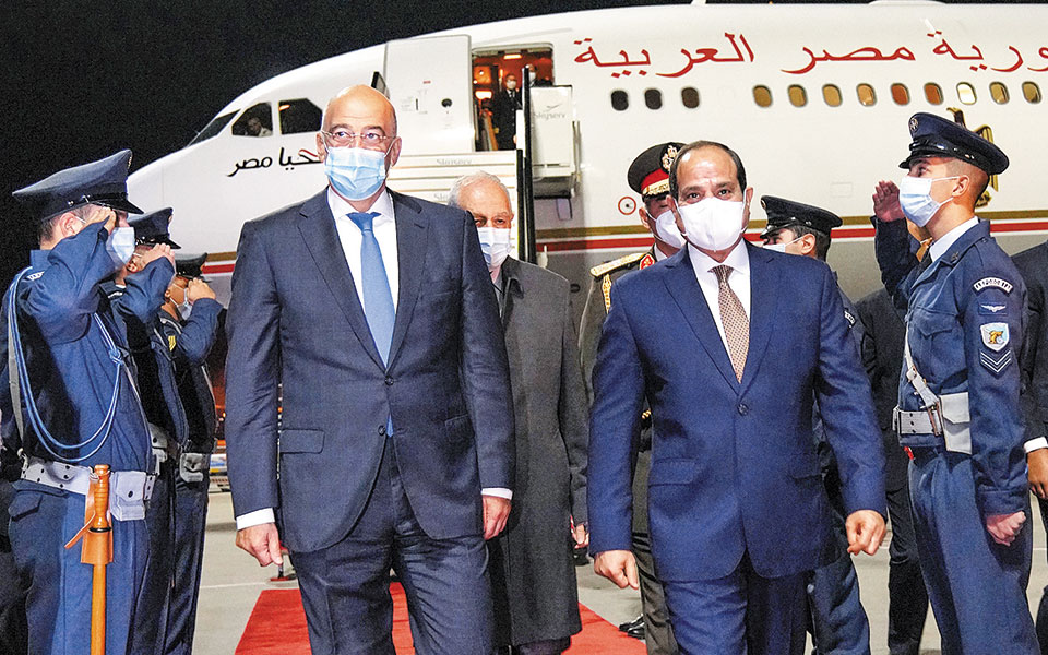 Η άφιξη του προέδρου της Αιγύπτου Αμπντέλ Φατάχ αλ Σίσι χθες το βράδυ στην Αθήνα και οι επαφές που θα έχει σήμερα με την ομόλογό του Κατερίνα Σακελλαροπούλου και τον πρωθυπουργό Κυριάκο Μητσοτάκη, μάλιστα εν μέσω παγκόσμιας επαγρύπνησης λόγω πανδημίας, είναι ενδεικτικές της «άνοιξης» στις σχέσεις μεταξύ των δύο χωρών. Χθες το βράδυ, τον κ. Σίσι υποδέχθηκε στο αεροδρόμιο ο υπουργός Εξωτερικών Νίκος Δένδιας, ο οποίος και είχε υπογράψει στις 6 Αυγούστου με τον Αιγύπτιο ομόλογό του τη συμφωνία για τμηματική οριοθέτηση αποκλειστικής οικονομικής ζώνης (ΑΟΖ) ανάμεσα στις δύο χώρες, στο Κάιρο.