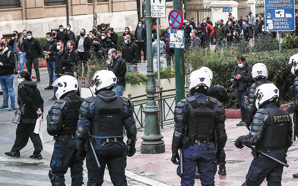 Η δημόσια υγεία και οι συναθροίσεις επανήλθαν με εμφατικό τρόπο στο προσκήνιο μετά τον εορτασμό της επετείου του Πολυτεχνείου και τις δύο αντιφατικές εικόνες που παρουσίασε το ΚΚΕ. Την πρωινή, που θύμιζε την κινητοποίηση της Πρωτομαγιάς, και την απογευματινή, όπου 1.500 μέλη του κόμματος βρέθηκαν στα Προπύλαια. Εν μέσω αυστηρών περιοριστικών όρων, η σύγκρουση με την αστυνομία έμοιαζε να είναι αναπόφευκτη, παρά τις καταγγελίες που υπάρχουν από τα στελέχη του Περισσού για απρόκλητη βία. «Το απόγευμα, όταν επιχειρήθηκε να γίνει πορεία, παρουσία του εισαγγελέα τούς ζητήθηκε να διαλυθούν και δεν διαλύθηκαν, και για αυτό η αστυνομία έκανε τη δουλειά της», ανέφερε ο Στέλιος Πέτσας μιλώντας στον ΣΚΑΪ. Ο κυβερνητικός εκπρόσωπος συμπλήρωσε πως επιχειρήθηκε να γίνει μια σύμπλευση με τον ΣΥΡΙΖΑ, το ΚΚΕ και το ΜέΡΑ25, «όμως αυτό το μέτωπο κατέρρευσε απέναντι στην κοινωνία, γιατί η κοινωνία δεν το αγκάλιασε».