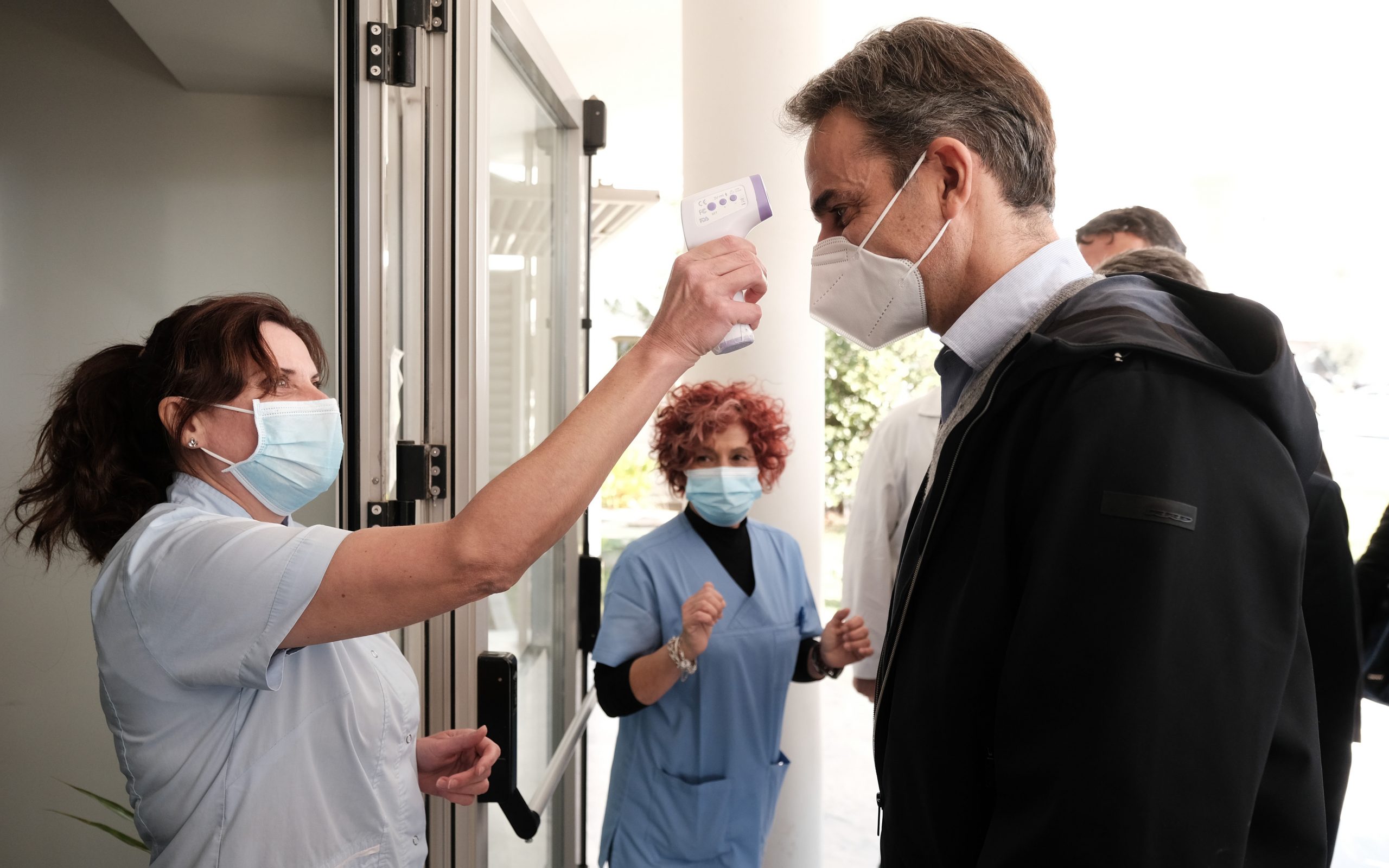 Ο Πρωθυπουργός επισκέφθηκε και το Κέντρο Υγείας στον Εύοσμο, όπου ευχαρίστησε το προσωπικό για το έργο του και ενημερώθηκε ότι θα λειτουργούν εκεί τρία εμβολιαστικά κέντρα, που θα δουλεύουν σε διπλή βάρδια.