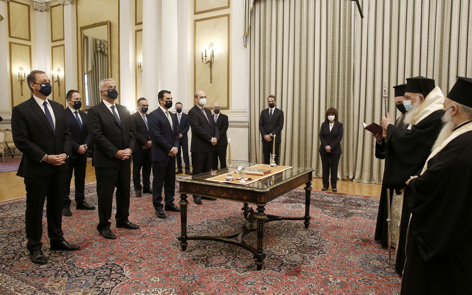 Σε τρεις «δόσεις» και με rapid tests πριν την έναρξή της, πραγματοποιήθηκε το πρωί της Τρίτης στο Προεδρικό Μέγαρο η ορκωμοσία του νέου υπουργικού συμβουλίου.