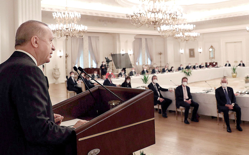ΚΩΝΣΤΑΝΤΙΝΟΥΠΟΛΗ – ΑΝΤΑΠΟΚΡΙΣΗ. Ο Ρετζέπ Ταγίπ Ερνογάν και ο Μεβλούτ Τσαβούσογλου, στις συναντήσεις τους με τους πρέσβεις της Ε.Ε. στην Αγκυρα, αφού ανακοίνωσαν με ικανοποίηση την επανέναρξη των διερευνητικών επαφών με την Ελλάδα στις 25 Ιανουαρίου, κατηγόρησαν την Αθήνα για προκλητικές ενέργειες. Παράλληλα, απείλησαν με το ενδεχόμενο επανεμφάνισης του «Ορούτς Ρέις» στην Ανατολική Μεσόγειο, σε περίπτωση που η Ε.Ε. τηρήσει σκληρή στάση απέναντι στην Αγκυρα. Λίγες ώρες μετά, το επίσημο πρακτορείο ειδήσεων της Τουρκίας «Ανατολή» δημοσίευσε τα θέματα που θέλει να συζητήσει η Αγκυρα με την Ελλάδα και περιλαμβάνει από την αποστρατιωτικοποίηση των νησιών μέχρι και περιοχές έρευνας και διάσωσης.