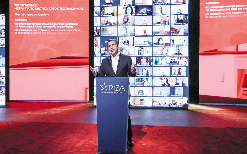 Να ξανασυστηθεί ο ΣΥΡΙΖΑ στη μεσαία τάξη που του γύρισε την πλάτη στις τελευταίες εκλογές επιχείρησε ο Αλ. Τσίπρας με την παρουσίαση του προγράμματος του κόμματος για την επανεκκίνηση της οικονομίας. Είναι χαρακτηριστική η αποστροφή του αρχηγού της αξιωματικής αντιπολίτευσης, κατά την εισήγησή του, που τόνισε πως πρέπει να ακούσουμε «τις μικρομεσαίες επιχειρήσεις, τους αυτοαπασχολούμενους, τους ελεύθερους επαγγελματίες και τους αγρότες. Δηλαδή: τη μεσαία τάξη». Ο κ. Τσίπρας, μιλώντας σε ανάλογο ψηφιακό περιβάλλον με εκείνο της παρουσίασης του προγράμματος για το νέο ΕΣΥ, εκτίμησε πως η κυβέρνηση «δεν μπορεί» και συμπλήρωσε ότι «εμείς μπορούμε γιατί το σχέδιό μας δεν αφορά τις αποτυχημένες συνταγές του παρελθόντος».